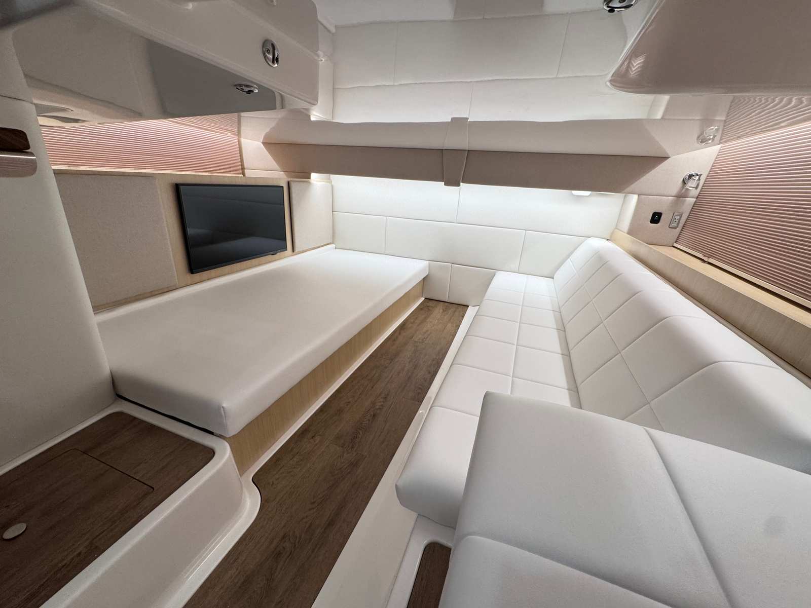 Step aboard the Regal 36 XO and discover a world of comfort and sophistication. The yacht is equipped with a manual bow sunshade system, offering customizable protection from the sun while you relax on deck. Transom seat covers add a layer of luxury and protection, ensuring your seating remains pristine. The windshield privacy cover provides added security and comfort, allowing you to enjoy private moments with your guests.The Mediterranean Blue canvas not only enhances the yacht’s aesthetic appeal but also offers durability and weather resistance. Inside the cockpit, the Seagrass mat delivers a soft, inviting surface underfoot, perfect for barefoot relaxation. The pillow package in neutral, coastal tones creates a serene ambiance, while the mosaic countertops add a touch of elegance to the galley area. The salon floor, finished in toasted oak, brings warmth and sophistication to the interior, making every moment onboard feel special.
