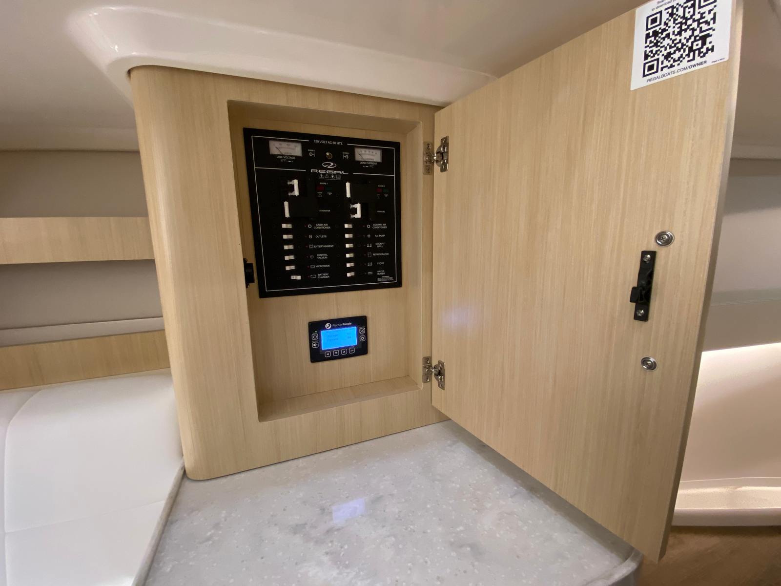 The Regal 36 XO is equipped with a range of special features designed to elevate your boating experience. The manual bow sunshade system offers flexible protection from the sun, allowing you to create the perfect environment for relaxation on the bow. Transom seat covers provide added comfort and protection for your seating areas, while the windshield privacy cover ensures discretion and shade when needed. The black canvas accents add a touch of elegance and durability, perfectly complementing the yacht's overall aesthetic. Every detail, from the color-coordinated hull to the thoughtfully designed interior, reflects Regal's commitment to quality and innovation.