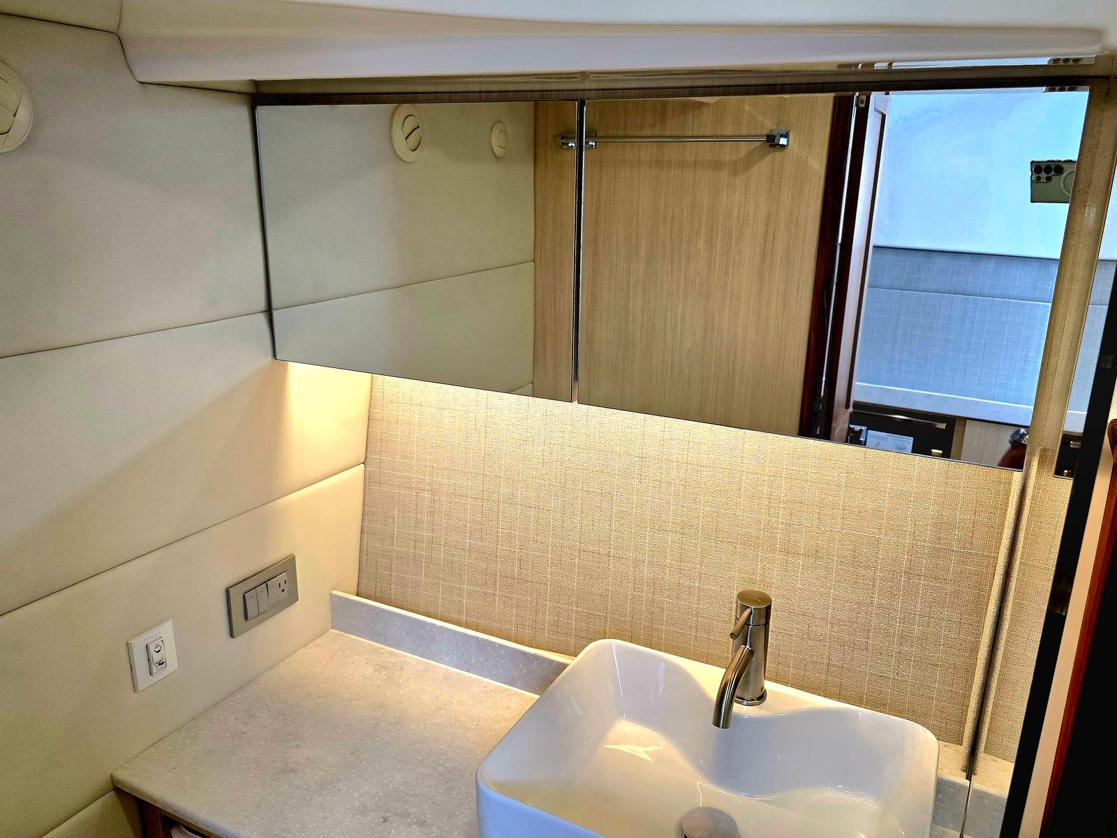 Beyond its stunning appearance and luxurious features, the Regal 38 SAV is designed with practical benefits that make ownership a pleasure. The yacht’s length provides ample storage for gear, water toys, and essentials, keeping your deck clutter-free and organized. The triple-engine setup not only delivers impressive speed but also aids in precise docking and maneuvering, reducing stress and making every outing more enjoyable.Fuel efficiency is enhanced by the yacht’s modern engineering, allowing you to spend more time on the water and less time refueling. The thoughtful layout ensures that every inch of space is utilized effectively, from the spacious cockpit to the well-appointed galley and lounging areas. The inclusion of a cockpit refrigerator means you can keep snacks and beverages on hand, while the sunshade system offers flexible comfort for all-day enjoyment.