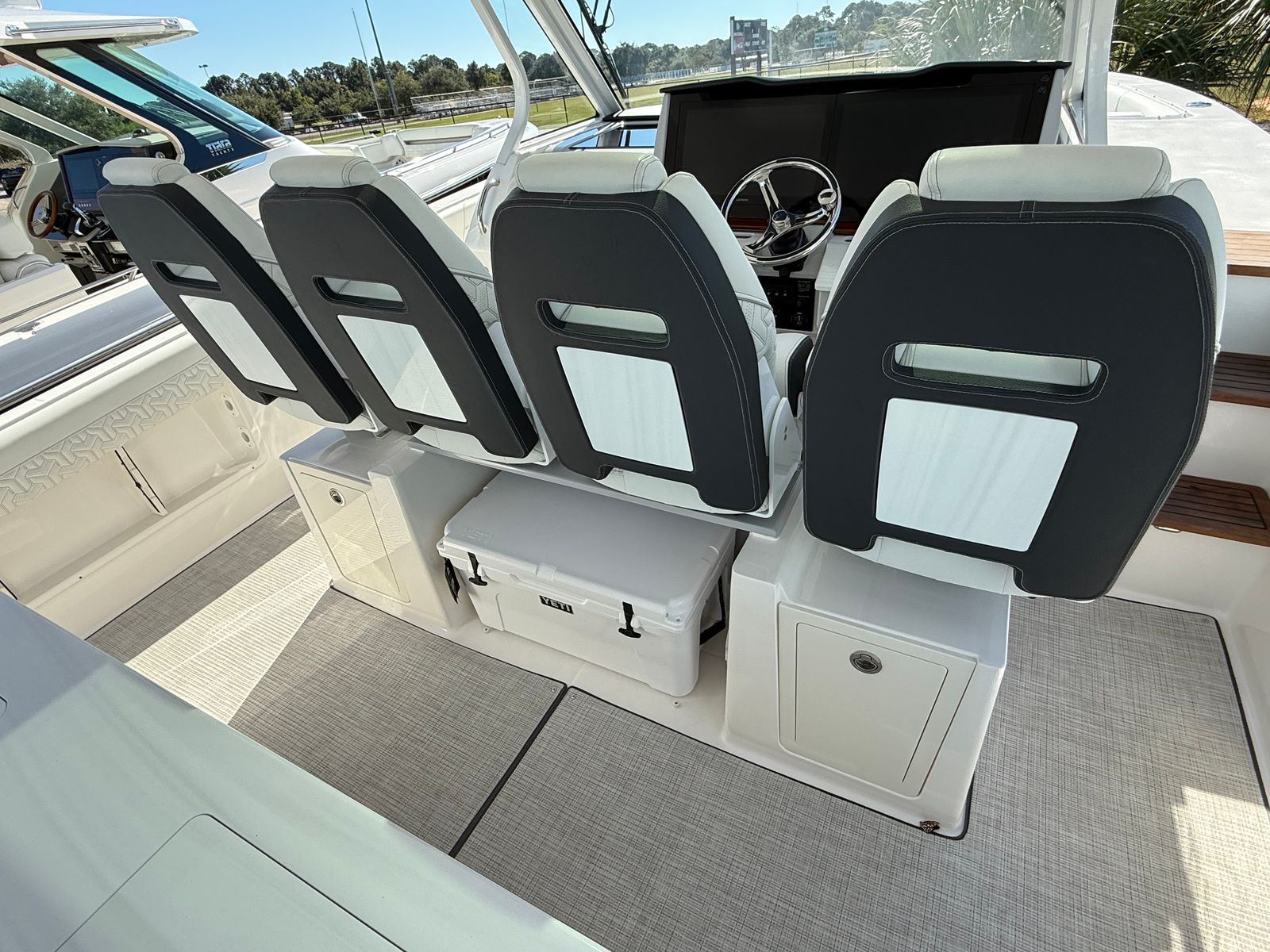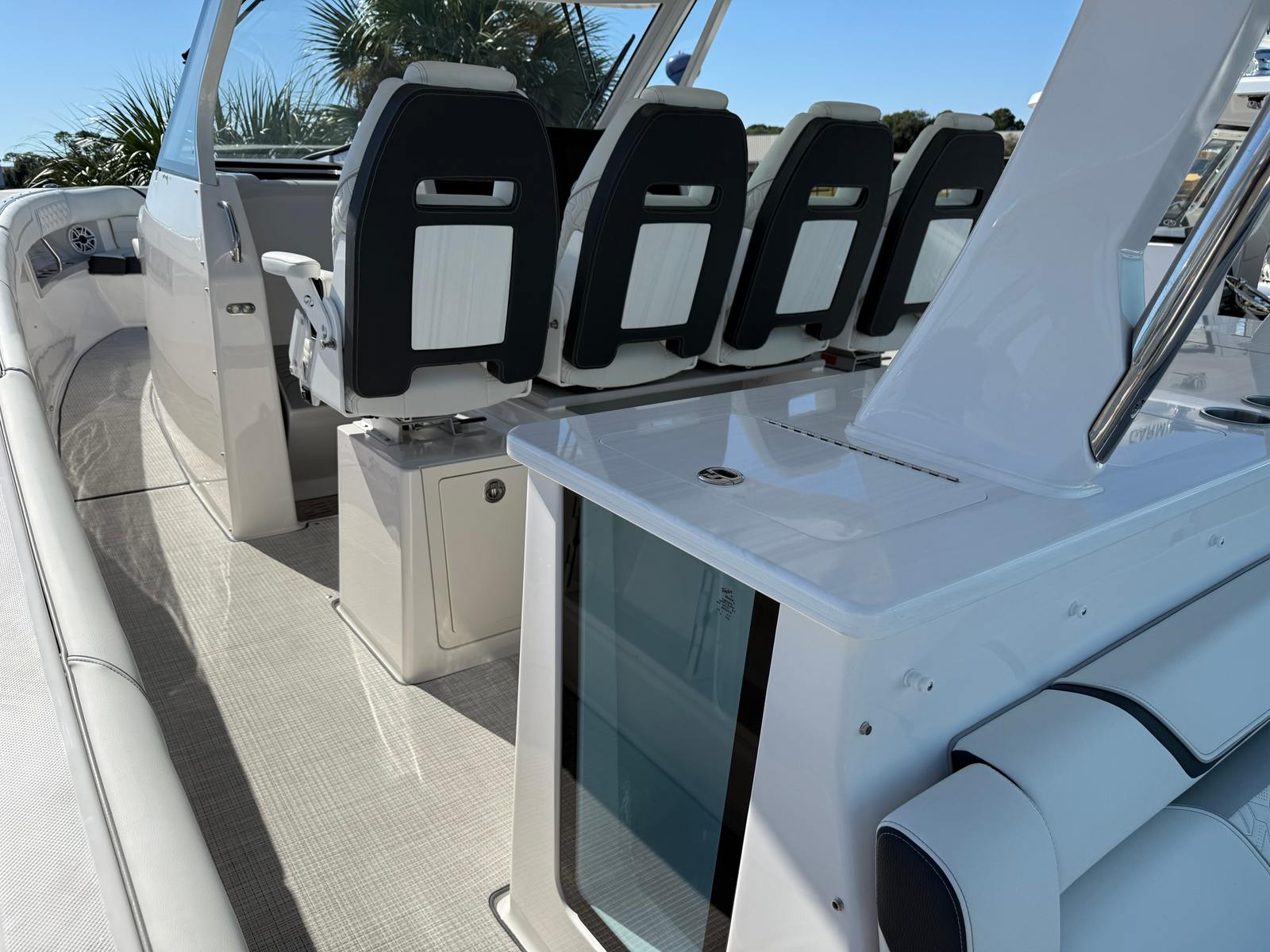 At the heart of the Regal 38 SAV lies a powerhouse trio of Yamaha F300NSB2 engines, each boasting 300 horsepower and finished in a pristine white with integrated steering. With a combined 900 horsepower, this yacht delivers exhilarating acceleration, smooth handling, and impressive top speeds. The triple-engine setup ensures optimal performance, whether you are navigating coastal waters, embarking on long-distance journeys, or enjoying a day of watersports. The integrated steering system enhances maneuverability, making docking and tight turns effortless. This Regal boat for sale is designed for those who appreciate the thrill of the open water and demand reliability from their vessel.