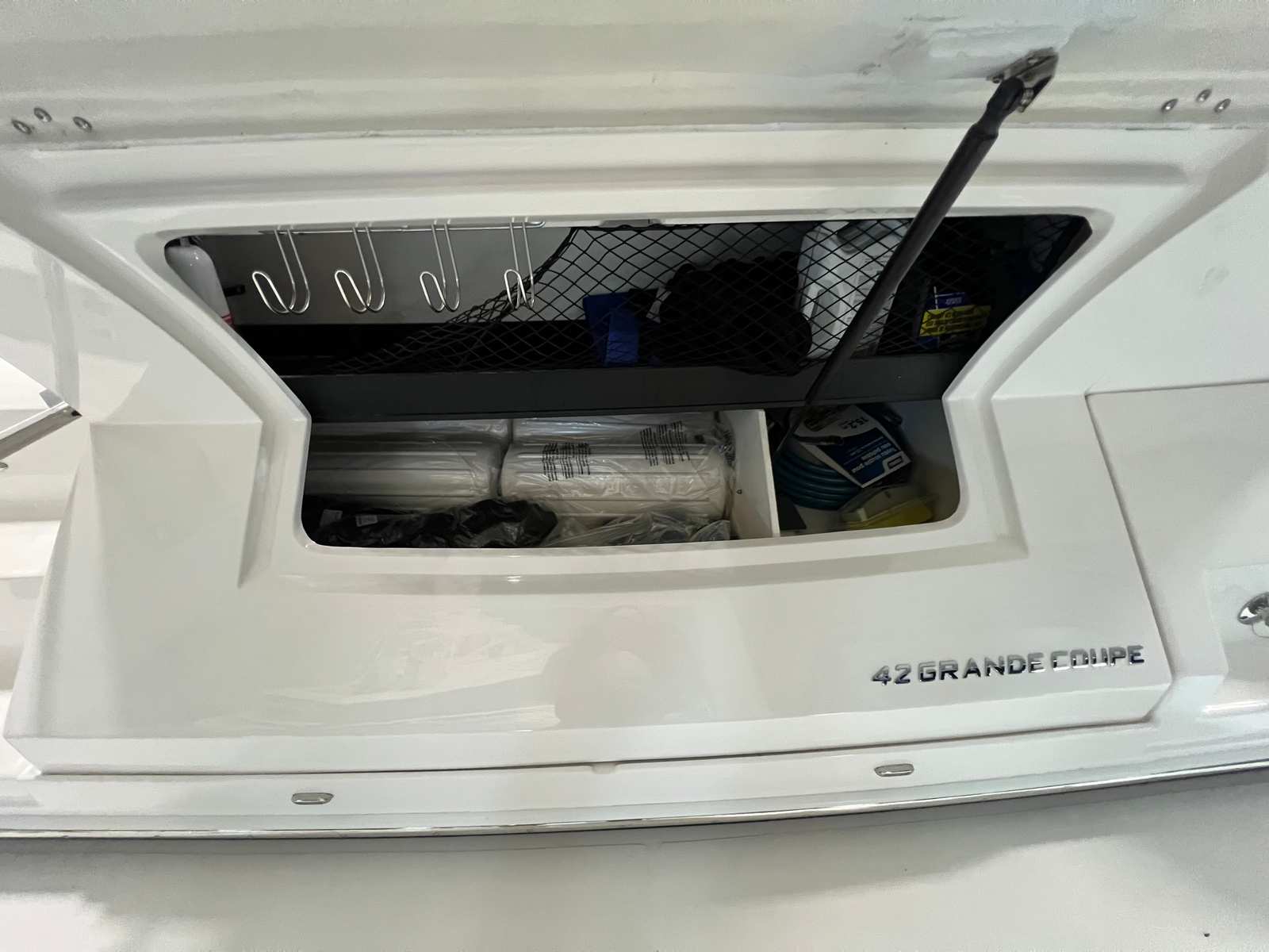 The Regal 42 Grande Coupe is designed with practicality in mind, making ownership both enjoyable and convenient. The yacht’s length provides ample storage space for all your gear, whether you’re planning a day trip or an extended voyage. The twin Volvo engines and IPS technology make docking and maneuvering a breeze, reducing stress and allowing you to focus on enjoying your time on the water. Fuel efficiency is a key benefit of the advanced diesel engines, helping you save on operating costs while maximizing your time at sea. The durable canvas covers protect your investment, ensuring that your yacht remains in pristine condition for years to come.