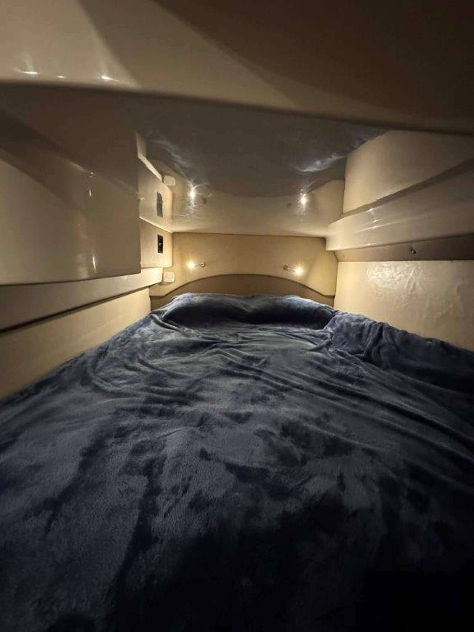 Forward stateroom: innerspring queen bed, cedar-lined lockers