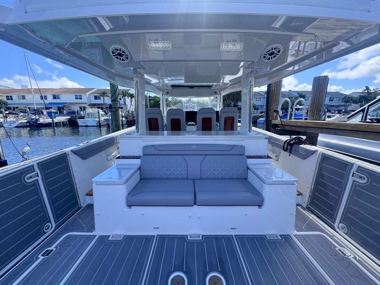 The Regal 43 SAV is as practical as it is luxurious. Its spacious design allows for ample storage, making it easy to bring along all the gear and supplies you need for extended trips. The yacht’s advanced engine system ensures smooth docking and maneuvering, even in tight marinas or crowded anchorages. Fuel efficiency is a key benefit, allowing you to spend more time on the water and less time at the fuel dock.The protective covers and full enclosure make maintenance simple, shielding your investment from sun, salt, and weather. The reFLEX swim platform offers a comfortable and safe space for swimming, water sports, or simply relaxing by the water’s edge. Every aspect of the 43 SAV is designed to make ownership enjoyable and hassle-free, so you can focus on what matters most: enjoying your time on the water.
