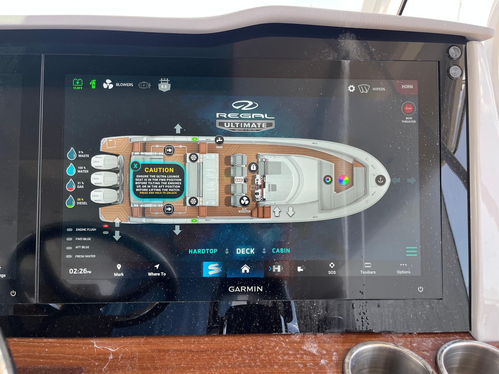 Practicality meets luxury in the Regal 43 SAV. The yacht’s thoughtful design includes ample storage for gear, supplies, and personal items, ensuring you have everything you need for extended trips or spontaneous adventures. The anchor windlass system makes it easy to secure your position, whether you are stopping for a swim, fishing, or enjoying a scenic sunset. Fender clips streamline the docking process, reducing stress and making it easier to handle the yacht in tight spaces.Fuel efficiency is a key consideration for any yacht owner, and the Regal 43 SAV’s advanced engineering ensures you get the most out of every journey. The combination of powerful engines and smart design means you can cover more distance with confidence, knowing your yacht is built for both performance and economy. The overboard discharge toilet adds an extra layer of convenience for longer voyages, allowing you to explore further without sacrificing comfort.
