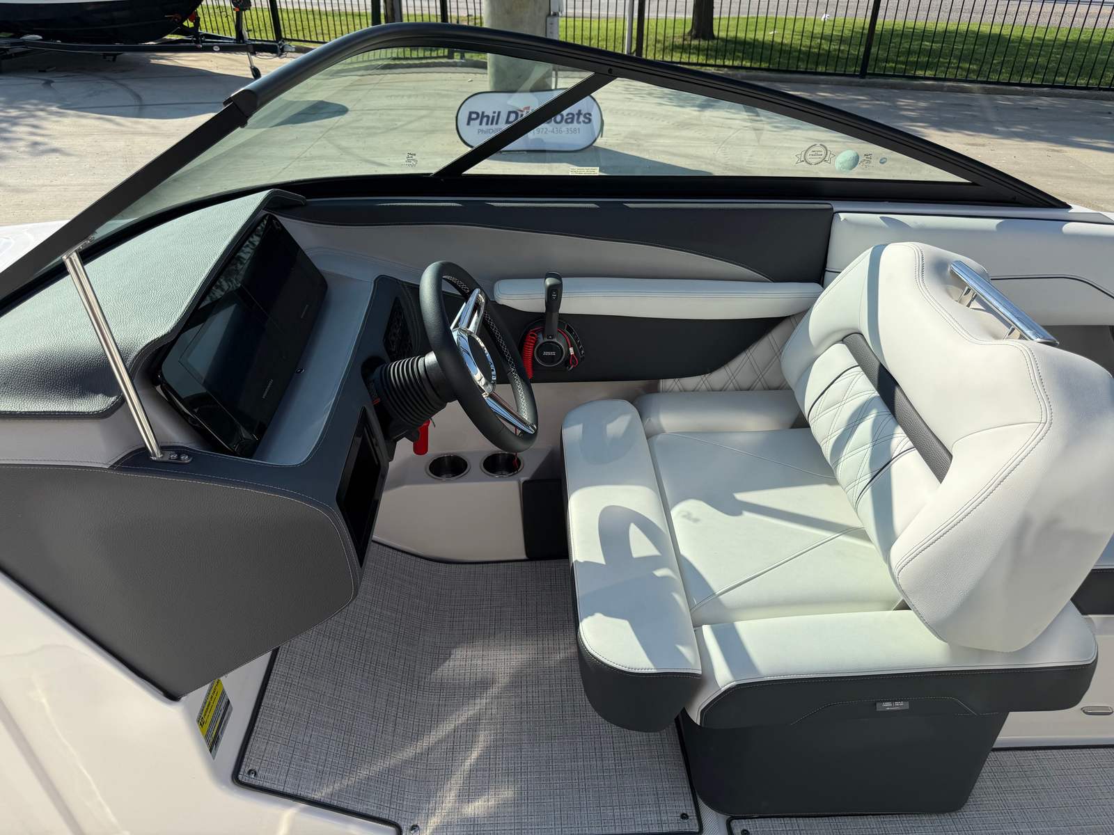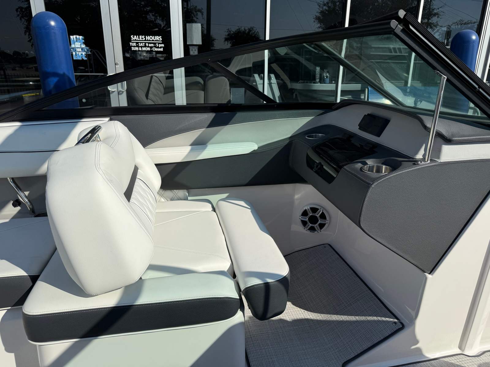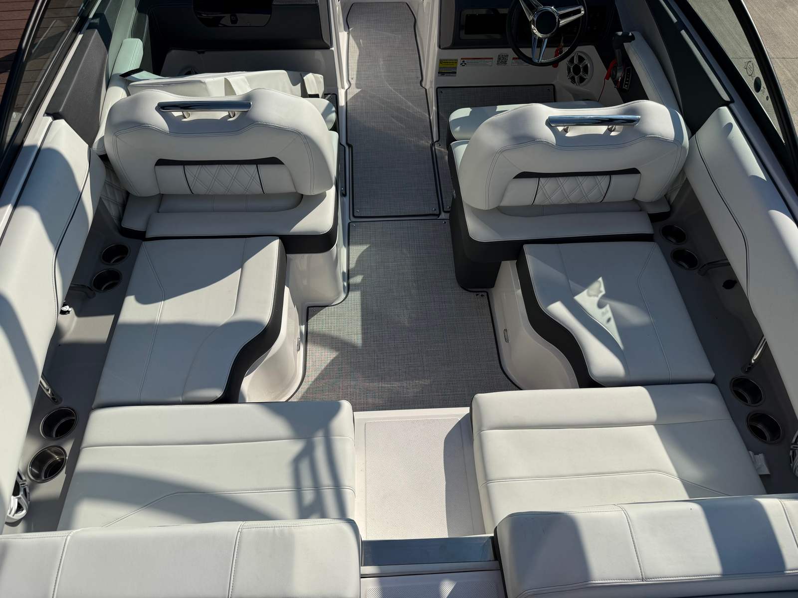 The Regal LS2 Surf is designed with practicality in mind, making ownership as enjoyable as the boating experience itself. The ample storage options throughout the boat provide plenty of space for gear, water toys, and personal belongings, keeping the deck clutter-free and organized. The forward drive system not only enhances performance but also simplifies docking and maneuvering in tight spaces. The dual battery system ensures you have reliable power for extended outings, while the durable travel cover and canvas protect your investment from the elements. The SeaDek Swim Platform and Seagrass Mat add both comfort and safety, making it easy to transition from water to deck and vice versa.