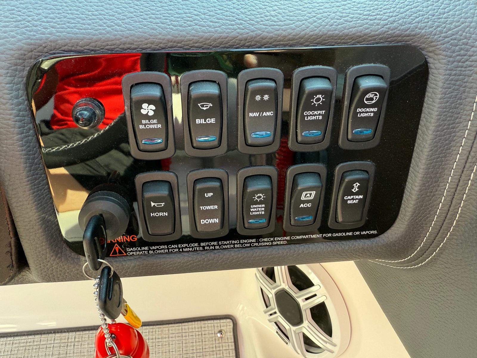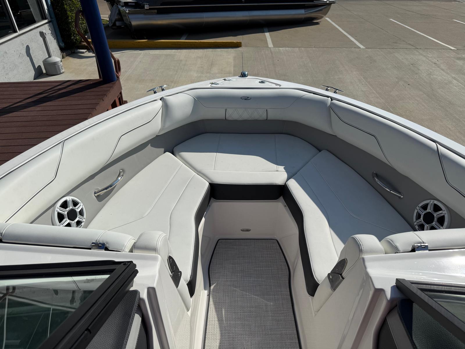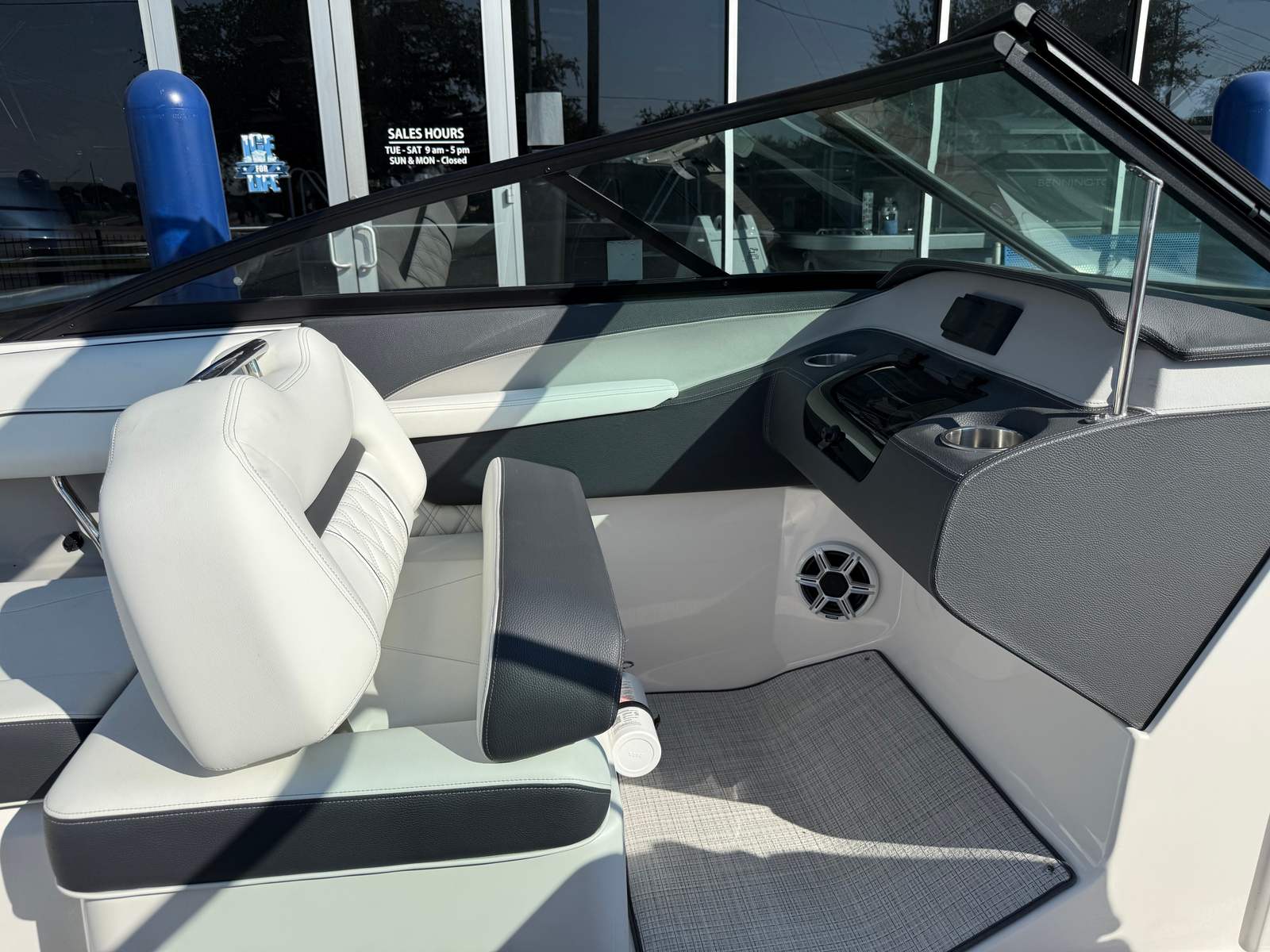 The Regal LS2 Surf is designed with practicality in mind, making ownership as enjoyable as the boating experience itself. The ample storage options throughout the boat provide plenty of space for gear, water toys, and personal belongings, keeping the deck clutter-free and organized. The forward drive system not only enhances performance but also simplifies docking and maneuvering in tight spaces. The dual battery system ensures you have reliable power for extended outings, while the durable travel cover and canvas protect your investment from the elements. The SeaDek Swim Platform and Seagrass Mat add both comfort and safety, making it easy to transition from water to deck and vice versa.