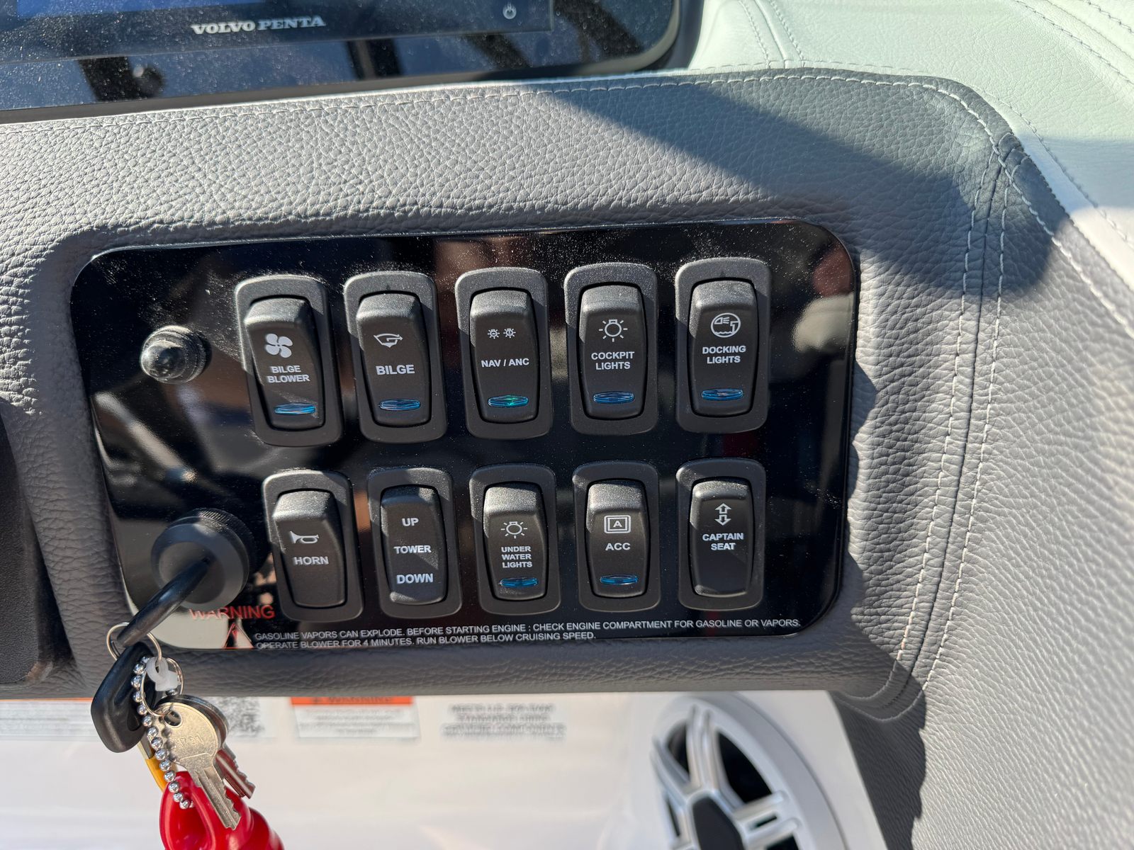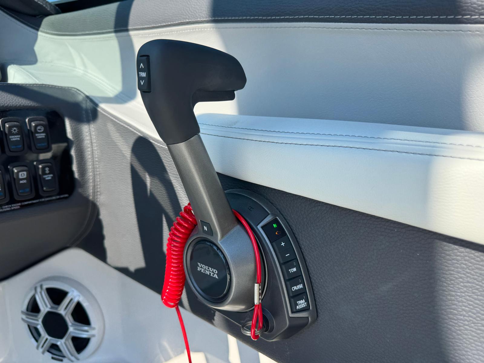 At the heart of the Regal LS2 Surf is a powerful Volvo V8 300 FWD EVC2 DP CAT engine, delivering an impressive 300 horsepower. This advanced propulsion system ensures exhilarating acceleration, smooth handling, and precise control, making it ideal for both high-speed runs and leisurely cruises. The forward drive technology enhances maneuverability and creates the perfect wake for surfing and other water sports, while the dual propeller design maximizes efficiency and responsiveness. Whether you are towing a wakeboarder or simply enjoying a spirited ride, the LS2 Surf’s performance capabilities set it apart from other bowrider boats for sale.