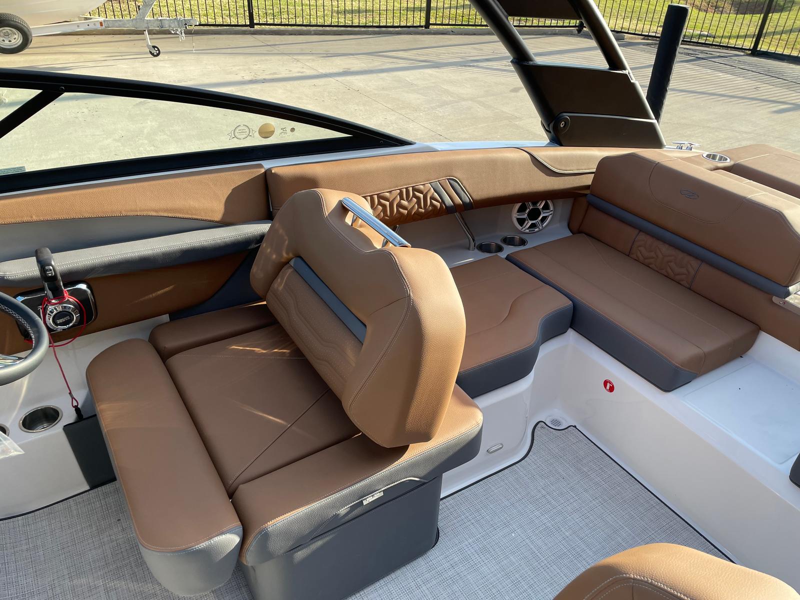 The 2026 Regal LS2 Ultimate is a brand-new bowrider that stretches an impressive 22.33 feet in length, offering ample space for friends, family, and all your favorite water activities. Regal’s commitment to quality and innovation is evident in every detail, from the sleek lines of the hull to the thoughtfully designed seating arrangements. The LS2 Ultimate’s striking exterior features a sophisticated Graphite hull color, accented by a bold Black bootstripe and a pristine Tahiti Beach White bottom, ensuring you turn heads at every marina and on every waterway.This bowrider is engineered for those who demand both performance and style. The LS2 Ultimate’s modern design is complemented by premium interior finishes, including Z1SBC Saddle Brown - Chil, Z2GRC Graphite - Chil, Z3SBC Saddle Brown - Chil, Z4GRC Graphite - Chil, and Z5GRC Graphite - Chil, creating a luxurious and inviting atmosphere for all aboard.