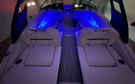 Features and SpecificationsThe Regal LS4 Surf is loaded with premium features designed to enhance comfort, convenience, and fun on the water. The Mediterranean Blue color scheme is complemented by Black canvas and Titanium accents, creating a stylish and inviting atmosphere throughout the boat. The included travel storage cover in Black ensures your investment is protected when not in use, while the Black canvas adds a touch of elegance and durability.Step into the cockpit and you will find a plush Seagrass Mat that provides a soft, comfortable surface underfoot, perfect for barefoot relaxation. The SeaDek Swim Platform offers a non-slip, cushioned area for easy access to the water, making it ideal for swimming, boarding, or lounging at anchor. The dual battery switch with tray and cables ensures reliable power management, so you can enjoy your day on the water without worry.