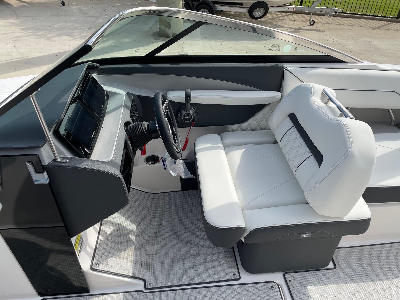 The 2026 Regal LS4 Surf is packed with special features that enhance comfort, convenience, and safety on the water. The Volvo V8 350 FWD EVC2 DP CAT engine is a standout, offering advanced forward drive capabilities for superior maneuverability and surf performance. The hull’s Steel Grey color, paired with the Seafoam boot stripe and Steel Grey bottom, creates a striking visual appeal that reflects Regal’s commitment to style and durability.Inside, the Titanium interior provides plush seating and a refined atmosphere, perfect for relaxing or entertaining guests. The travel storage cover protects your investment during transport and storage, while the cockpit Seagrass mat adds a touch of luxury underfoot. The SeaDek swim platform offers a comfortable, non-slip surface for swimmers and water sports enthusiasts, making it easy to get in and out of the water.Practical features like the dual battery switch with tray and cables, along with a battery charger, ensure reliable power management and peace of mind during extended outings. These thoughtful additions make the LS4 Surf a standout choice for those seeking a Regal boat for sale that combines style, performance, and practicality.