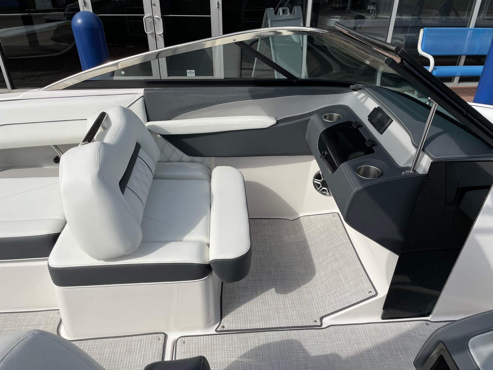 The Regal LS4 Surf Bowrider is designed with practicality in mind, making ownership easy and enjoyable. The travel storage cover protects the boat from the elements during transport and storage, preserving its pristine condition. The dual battery switch and charger simplify power management, ensuring your boat is always ready for action.The spacious 24.42-foot length provides ample storage for gear, water toys, and personal items, keeping the cockpit organized and clutter-free. The advanced hull design and forward drive engine make docking and maneuvering effortless, even in tight spaces. Fuel efficiency and low emissions mean you can enjoy longer outings with fewer stops, maximizing your time on the water.