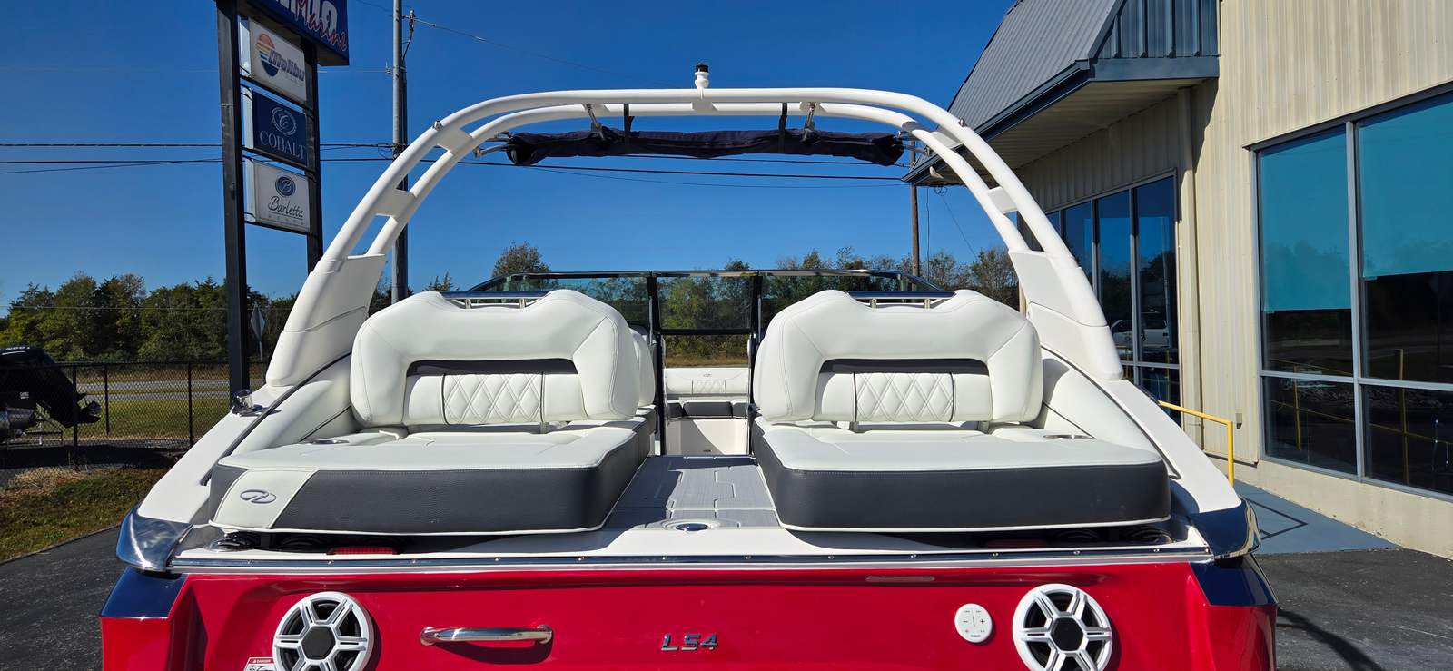 The 2026 Regal LS4 Bowrider is loaded with premium features that enhance both comfort and convenience. The Mediterranean Blue hull color, accented by a Flame Red bootstripe and Tahiti Beach White bottom, creates a striking visual impression that stands out in any marina. The Titanium interior offers plush seating and a refined atmosphere, perfect for relaxing or entertaining guests.A Travel Storage Cover in black ensures your boat stays protected when not in use, while the Mediterranean Blue canvas provides shade and style during your outings. The cockpit is fitted with a Seagrass Mat, offering a soft, non-slip surface that is both attractive and easy to maintain. The SeaDek Swim Platform extends your enjoyment to the water’s edge, providing a comfortable and safe area for swimming, sunbathing, or gearing up for water sports.For added peace of mind, the LS4 is equipped with a Dual Battery Switch, complete with tray and cables, ensuring reliable power management and easy maintenance. Every detail of this bowrider is designed to enhance your boating experience, from the stylish finishes to the practical amenities.