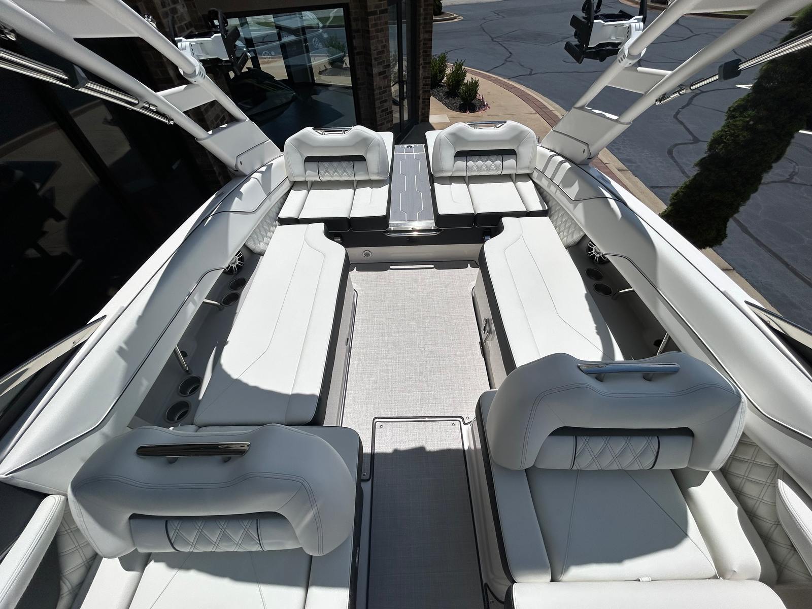 At the heart of the LS6 Surf is a powerful Volvo V8 380 FWD EVC2 DP CAT engine, delivering an impressive 380 horsepower. This single-engine setup ensures smooth, responsive handling and plenty of power for all your water sports adventures. Whether you’re cruising at high speeds, carving through waves, or towing wakeboarders, the LS6 Surf’s advanced propulsion system offers exceptional performance and reliability. The forward drive technology enhances maneuverability and safety, making it easy to navigate tight marinas or open water with confidence.