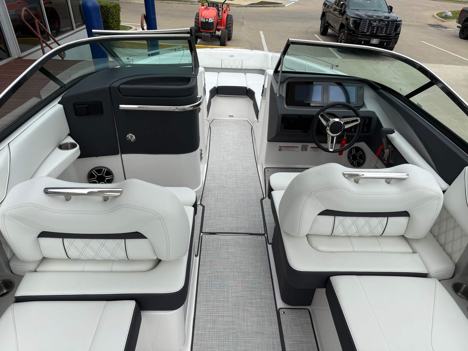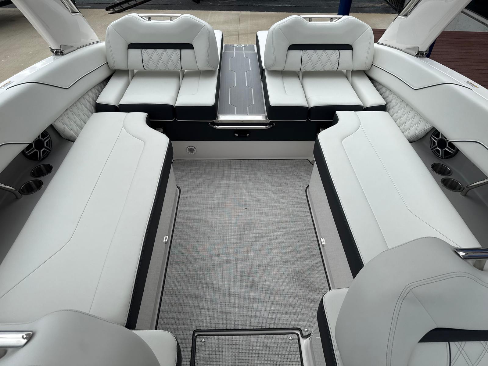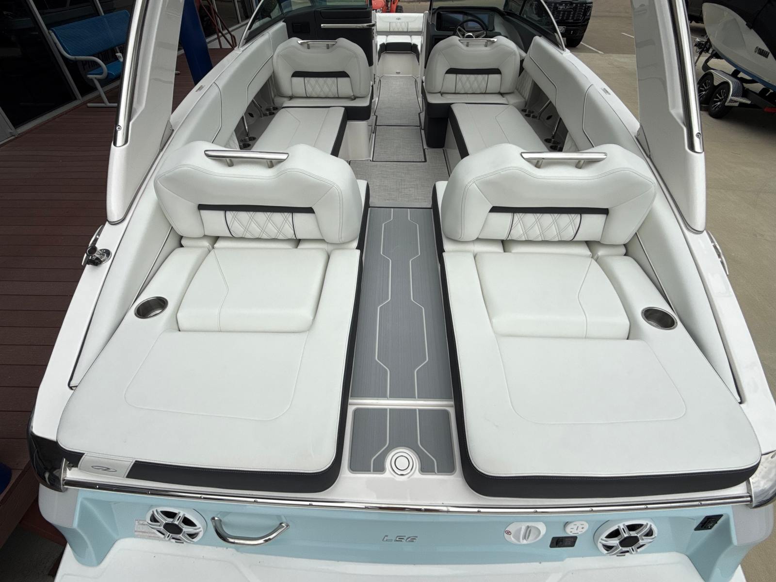 The Regal LS6 is designed with practicality in mind, making every aspect of ownership more enjoyable. The travel storage cover helps protect your boat from the elements, while the dual battery switch system offers peace of mind by ensuring you always have backup power when you need it. The docking lights simplify nighttime arrivals and departures, enhancing safety and convenience. The pump-out toilet fittings make it easy to extend your time on the water without sacrificing comfort or cleanliness. With its manageable length and advanced forward drive system, the LS6 is easy to dock and maneuver, even for those new to boating.