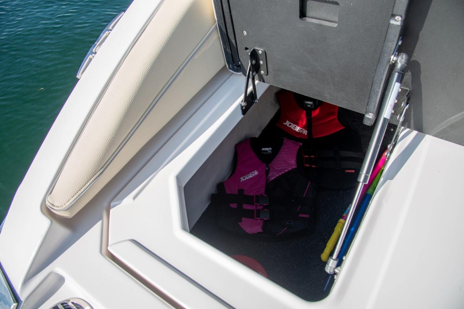 The Regal LS6 Bowrider is designed with practicality in mind, making ownership easy and enjoyable. The generous storage compartments allow you to stow gear, water toys, and personal items securely, keeping the deck clutter-free. Docking is a breeze thanks to the boat’s responsive handling and manageable size, while the efficient engine ensures you spend more time enjoying the water and less time refueling.The dual battery system and onboard charger provide peace of mind, ensuring your electronics and accessories are always powered up and ready to go. The durable cockpit mat and protective covers help maintain the boat’s pristine condition, reducing maintenance and preserving its value over time.