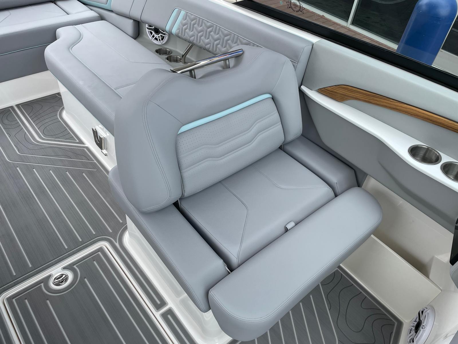 At the heart of the 2026 Regal LS9 Surf Ultimate is a powerful Volvo V8 380 FWD EVC2 DP CAT engine, delivering an impressive 380 horsepower. This advanced engine ensures exhilarating acceleration, smooth cruising, and exceptional handling, making every ride both thrilling and comfortable. The forward drive system is engineered for optimal surf performance, allowing you to create the perfect wake for watersports or enjoy a smooth, stable ride for leisurely cruising. Whether you’re carving through waves or gliding across calm waters, the LS9 Surf Ultimate’s performance capabilities set it apart from other bowrider boats for sale.
