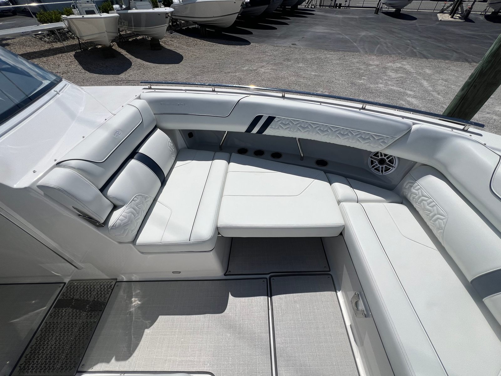 Power and precision are at the heart of the Regal LX36. Equipped with twin engines that deliver a combined 900 horsepower, this bowrider is engineered for exhilarating performance and smooth handling. The dual-engine setup ensures robust acceleration, impressive top speeds, and reliable maneuverability, whether you are cruising along the coastline or making quick turns in open water. The advanced propulsion system not only enhances the thrill of boating but also provides the confidence and control you need for a safe and enjoyable ride. For those seeking a high-performance Regal boat for sale, the LX36 is sure to exceed expectations.