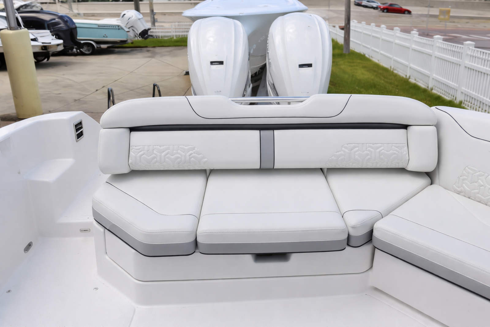 Power and precision define the 2023 Regal LX36. Outfitted with twin engines delivering a combined 850 horsepower, this bowrider boat for sale is engineered for exhilarating speed and responsive handling. The dual-engine setup ensures smooth acceleration and reliable performance, whether you’re cruising at a leisurely pace or slicing through waves at higher speeds. With only 100 engine hours, these engines have plenty of life left, promising many seasons of adventure on the water. The LX36’s advanced hull design enhances stability and maneuverability, making every outing a confident and enjoyable experience.