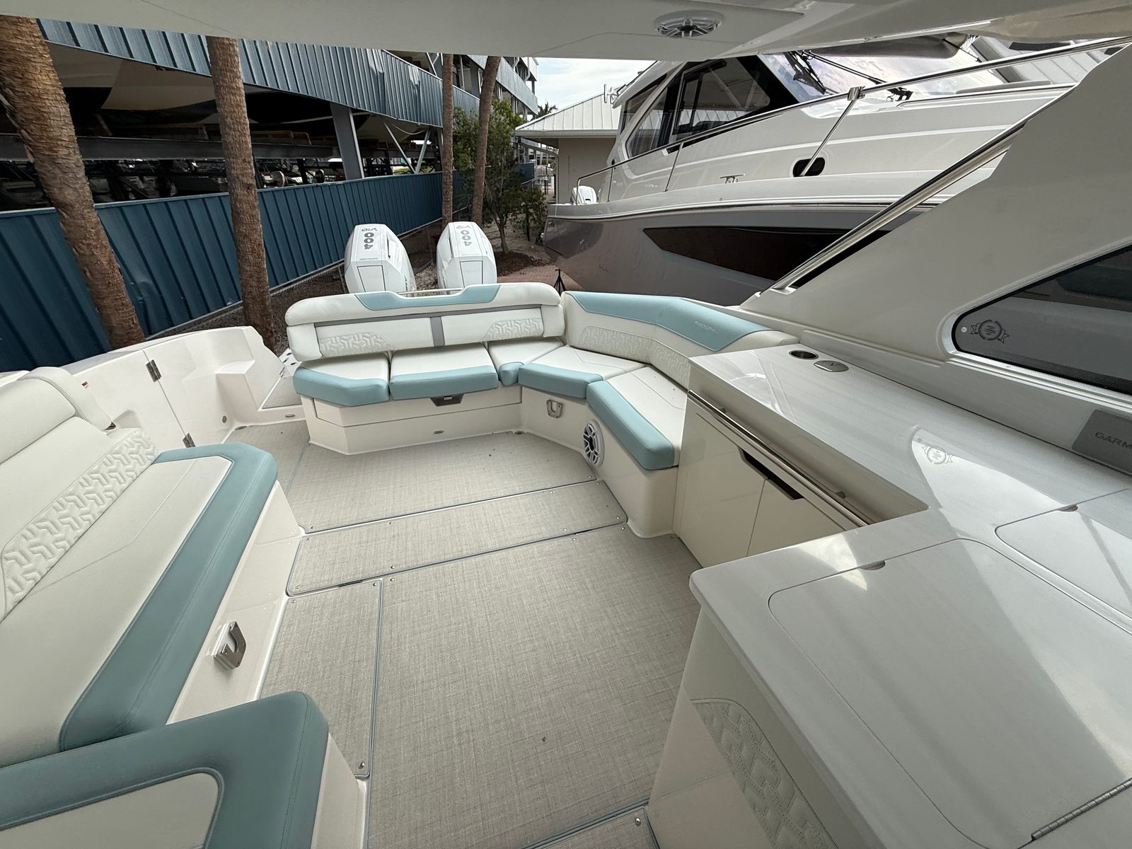 The 2025 Regal LX36 is packed with innovative features designed to enhance your boating experience. The quarter berth utility room offers versatile space for storage or relaxation, providing added convenience for longer trips or overnight stays. Navigation is a breeze with the companion Garmin 8616 and dual Garmin GPS8616XSV units, complemented by a B60 transducer for precise depth and fish-finding capabilities. The digital switching system streamlines onboard controls, allowing you to manage lighting, systems, and more with the touch of a button.For those who appreciate comfort and protection from the elements, the aft cockpit canvas with a Palm Beach enclosure and white canvas provide shade and shelter, ensuring you can enjoy your time on the water regardless of the weather. The cockpit drawer system adds practical storage solutions, keeping your gear organized and easily accessible. The Z1PWS Pure White standard finish and PowerShade system further elevate the LX36’s appeal, offering both style and functionality.