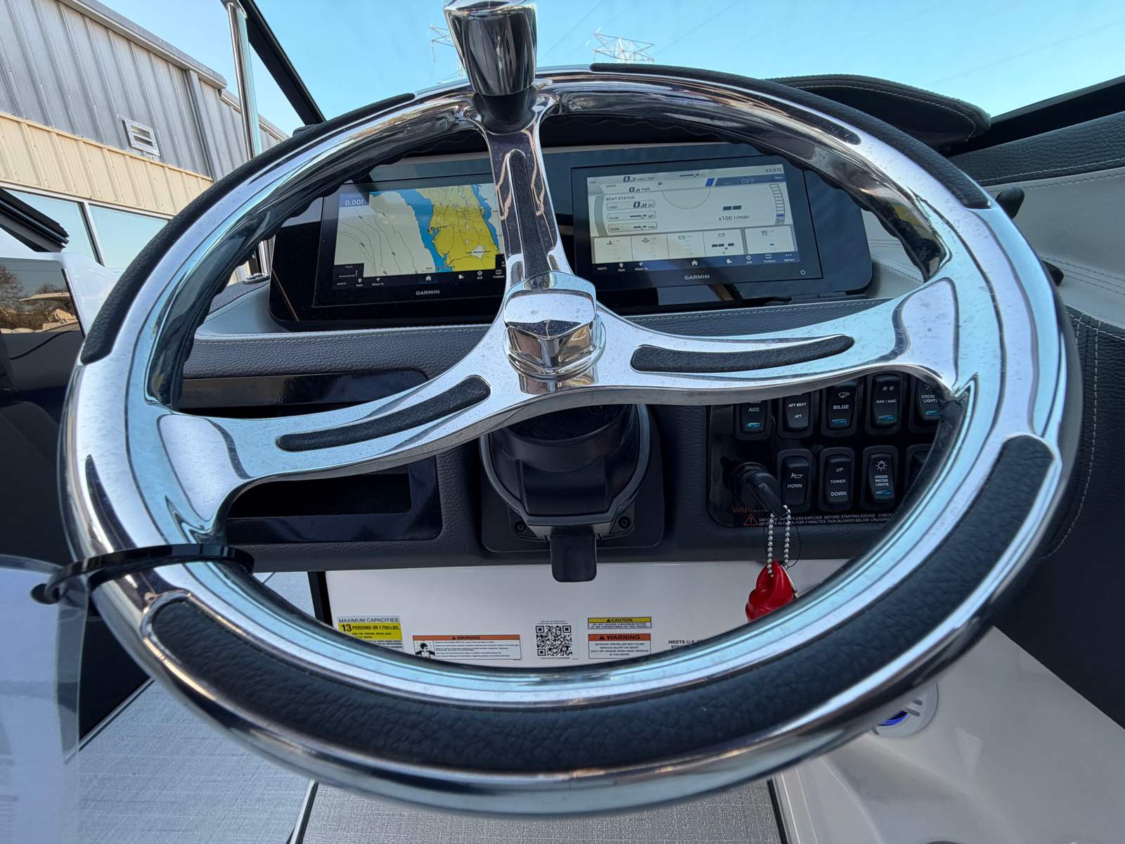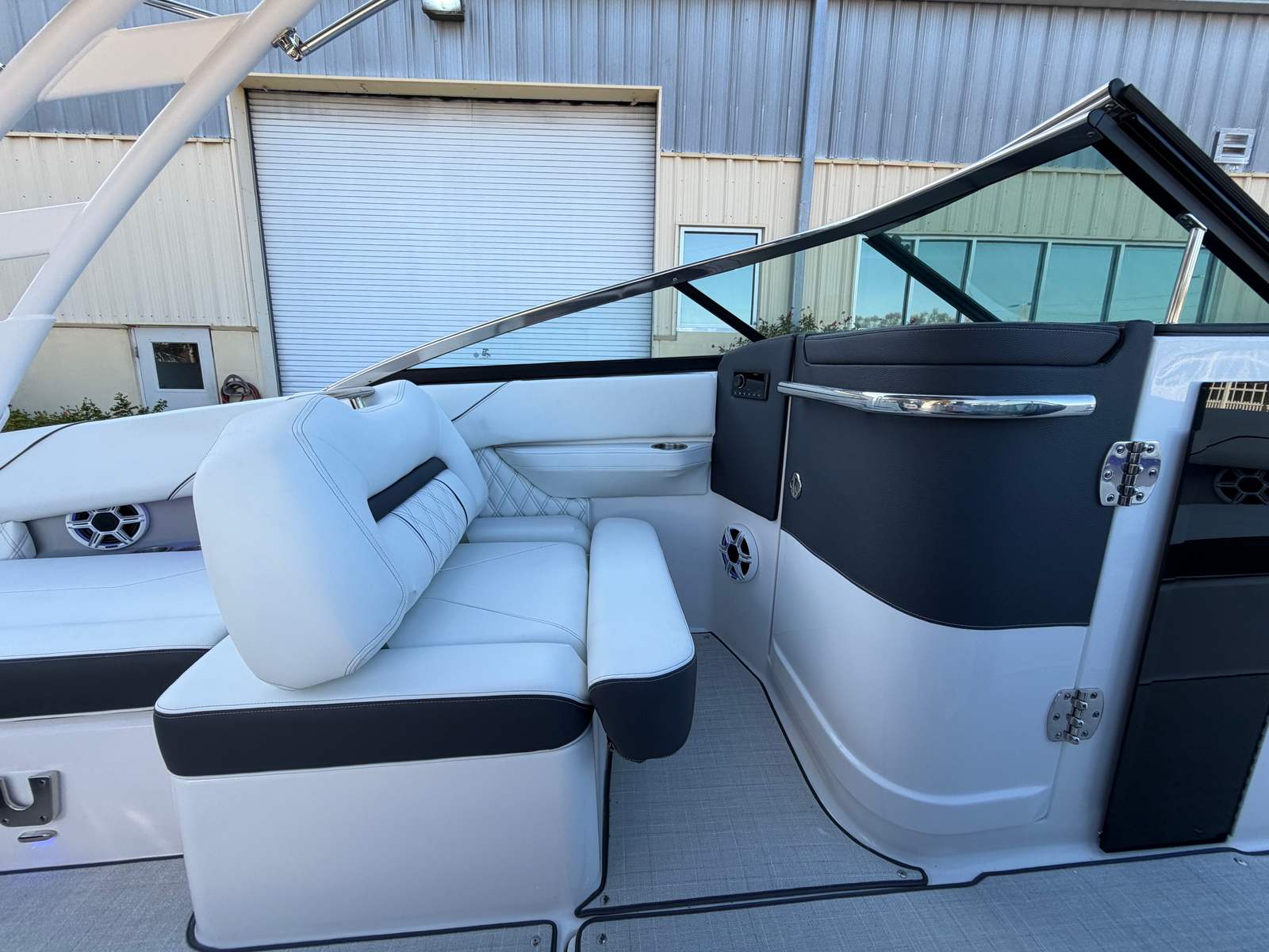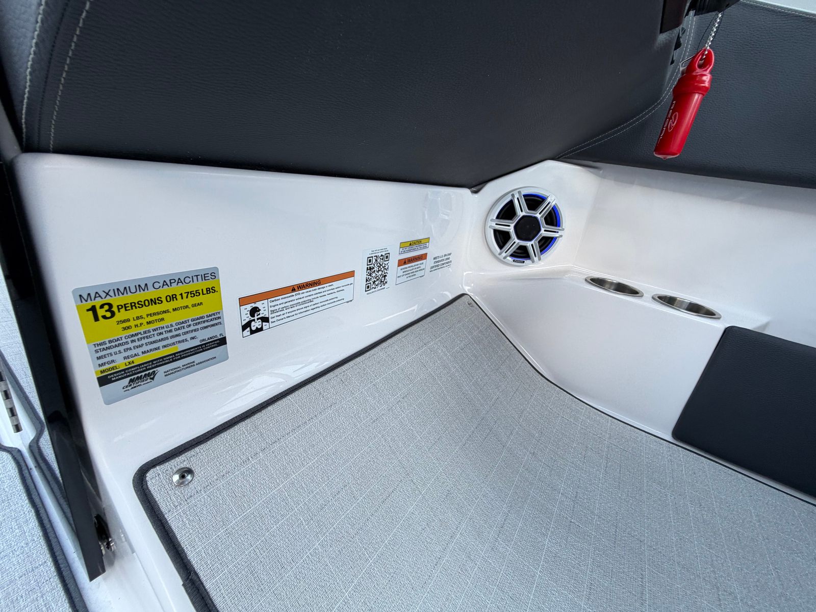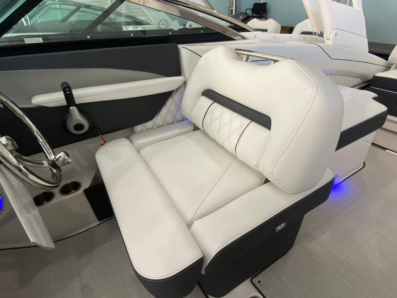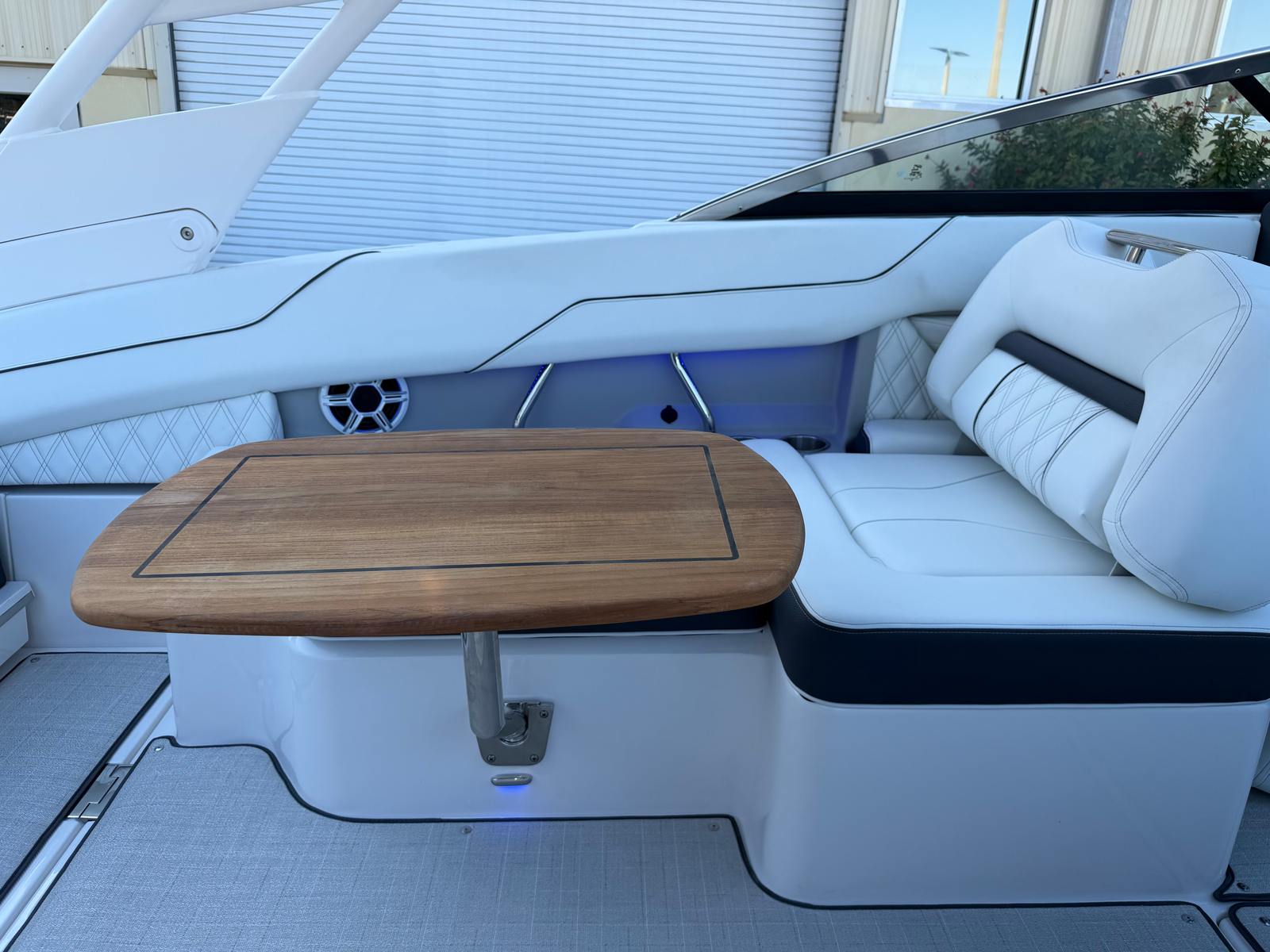The Regal LX4 is designed for versatility and ease of ownership. Its manageable length makes storage straightforward, whether you’re keeping it at a marina or trailering it to your favorite launch site. The bow thruster and fender clips streamline docking, so you can spend less time maneuvering and more time enjoying the water. The dual battery switch ensures reliable power for electronics and accessories, while the cockpit seagrass mat provides a comfortable, easy-to-clean surface for all your activities.Fuel efficiency and responsive handling make the LX4 a practical choice for both short trips and longer adventures. The head compartment adds convenience for families and groups, while the port light brings a bright, welcoming feel to the interior. Every feature is designed to make boating easier, more enjoyable, and more accessible for everyone on board.