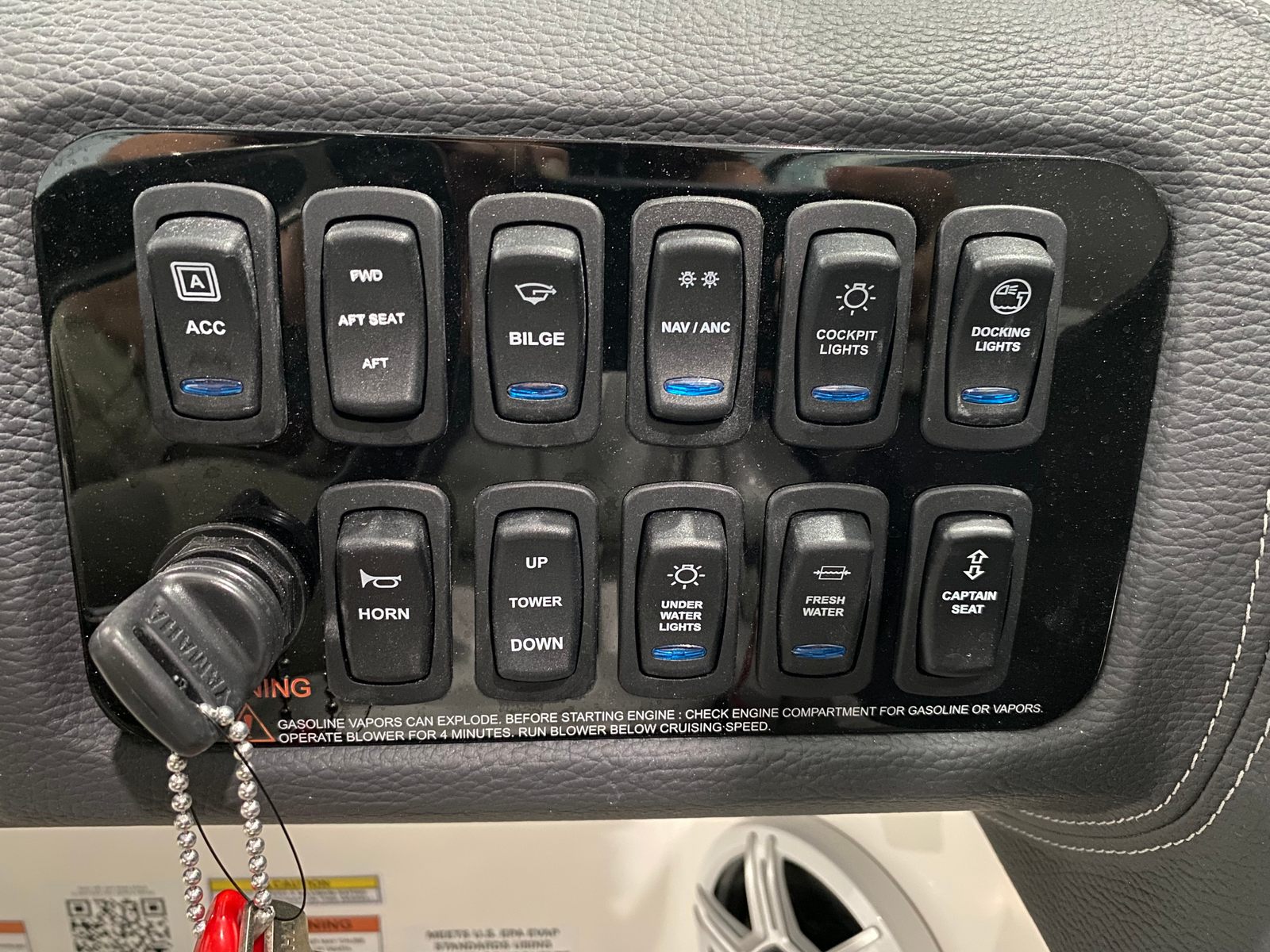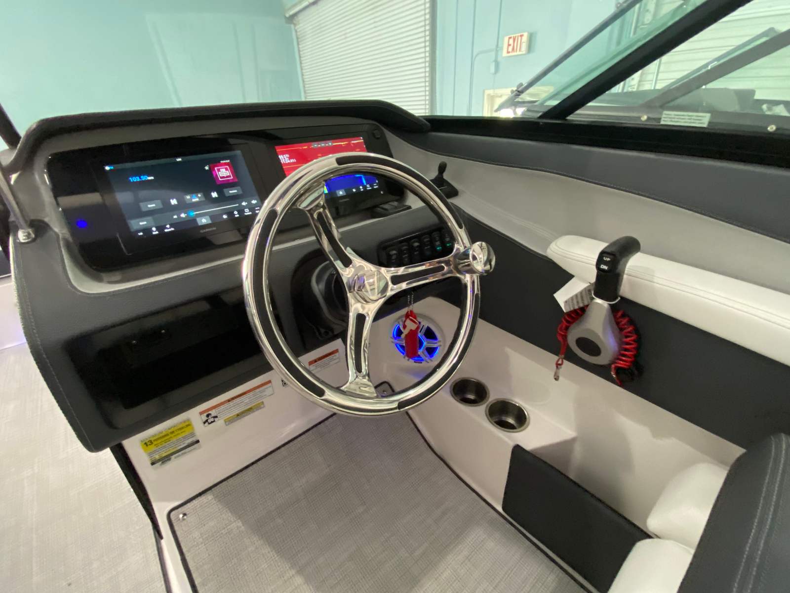 The Regal LX4 Bowrider is packed with features designed to enhance your boating experience. The boat’s Mediterranean Blue canvas adds a touch of elegance and protection, while the Bow Sunshade System—manual in operation—provides welcome relief from the midday sun, allowing you and your guests to relax in comfort. Bow and cockpit covers help keep your boat looking pristine, protecting it from the elements when not in use.Step into the cockpit and you’ll find a luxurious Seagrass Mat underfoot, offering both style and comfort. The dual battery switch with tray and cables ensures reliable power management, giving you peace of mind during extended outings. Every detail, from the color-coordinated accents to the ergonomic seating, has been carefully considered to create a welcoming and functional environment.