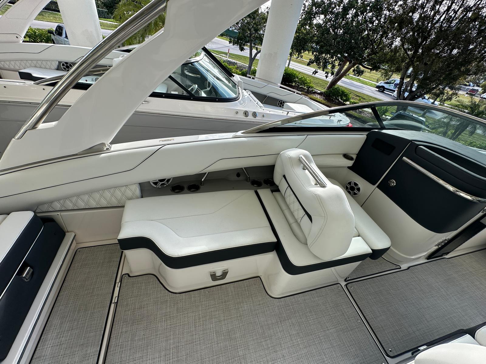 The Regal LX4 Bowrider is packed with premium features designed to enhance comfort, convenience, and fun. The Bow & Cockpit Covers provide essential protection from the elements, keeping your boat in pristine condition. The White Stamoid Upgrade Bimini Top and Mediterranean Blue canvas offer stylish shade options, perfect for sunny days on the water. The Cockpit Seagrass Mat adds a layer of comfort and sophistication underfoot, while the Dual Battery Switch with tray and cables ensures reliable power management for all your onboard electronics. Every detail, from the vibrant hull colors to the thoughtfully designed interior, reflects Regal’s dedication to superior craftsmanship and user-friendly design.
