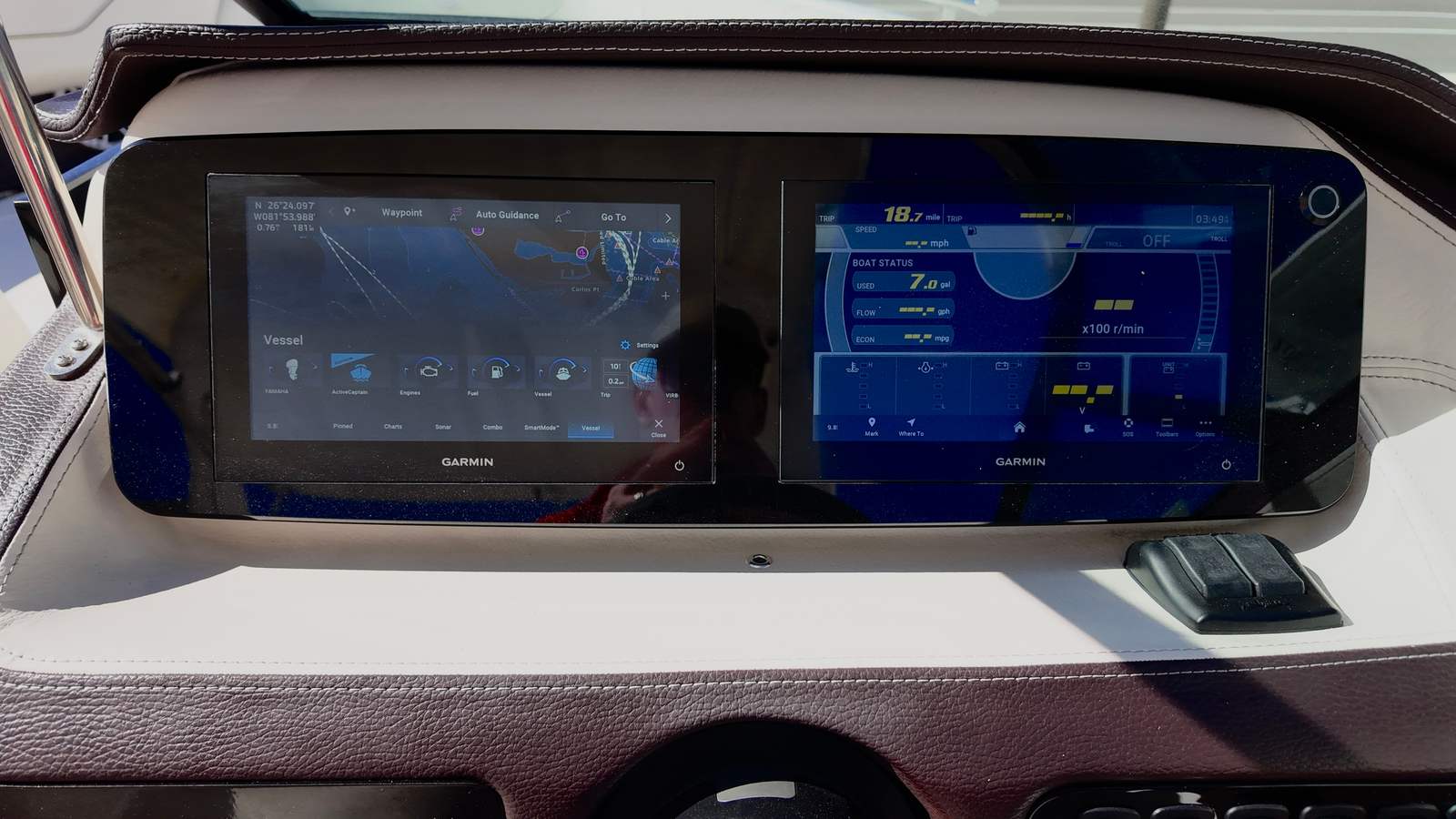 Practicality meets luxury in the Regal LX6 Bowrider. The fender clips simplify docking, allowing you to secure your boat quickly and efficiently. The trim tabs offer precise control over the boat’s performance, ensuring a smooth and comfortable ride regardless of water conditions. Storage solutions are thoughtfully integrated throughout the vessel, providing ample space for gear, water toys, and personal items without compromising on style or comfort.The Yamaha F350XSA2 engine’s fuel efficiency means you can spend more time enjoying the water and less time refueling. The dual Garmin displays and B60 transducer make navigation and fish finding effortless, whether you’re exploring new waterways or returning to your favorite fishing spot. The Regal LX6 Bowrider is designed to make ownership easy, enjoyable, and stress-free.