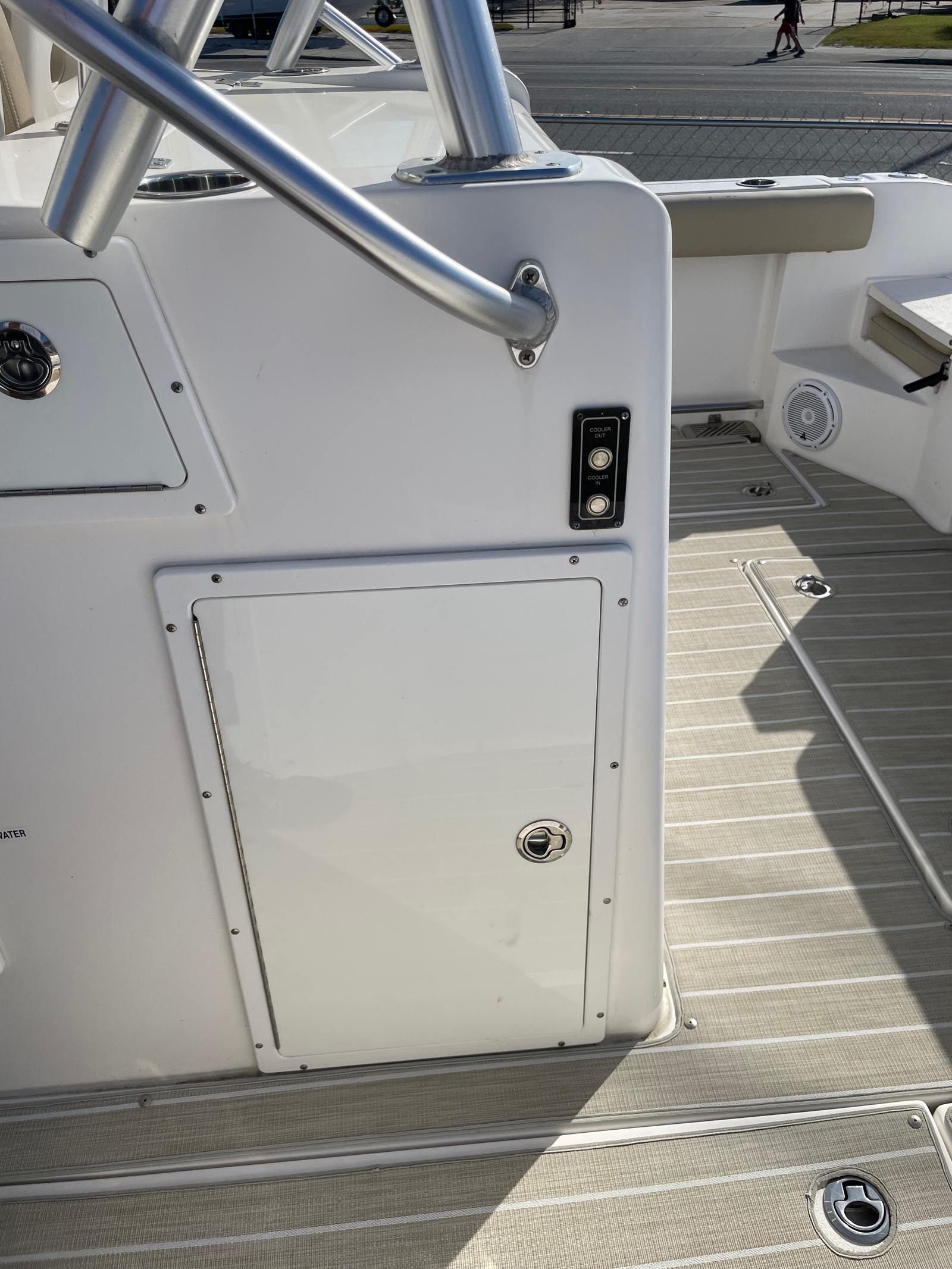 Under the hood, the Sea Fox 328 Commander is powered by twin engines, delivering a combined 600 horsepower. With 1,742 engine hours, these engines have been well-utilized, showcasing their reliability and durability. The dual-engine setup ensures powerful acceleration, smooth cruising, and the confidence to tackle a variety of water conditions. Whether you’re heading offshore for a day of fishing or cruising along the coastline with friends and family, the performance of this center console boat is sure to impress. The responsive handling and impressive horsepower make every outing a thrilling experience, while the efficient design helps maximize your time on the water.