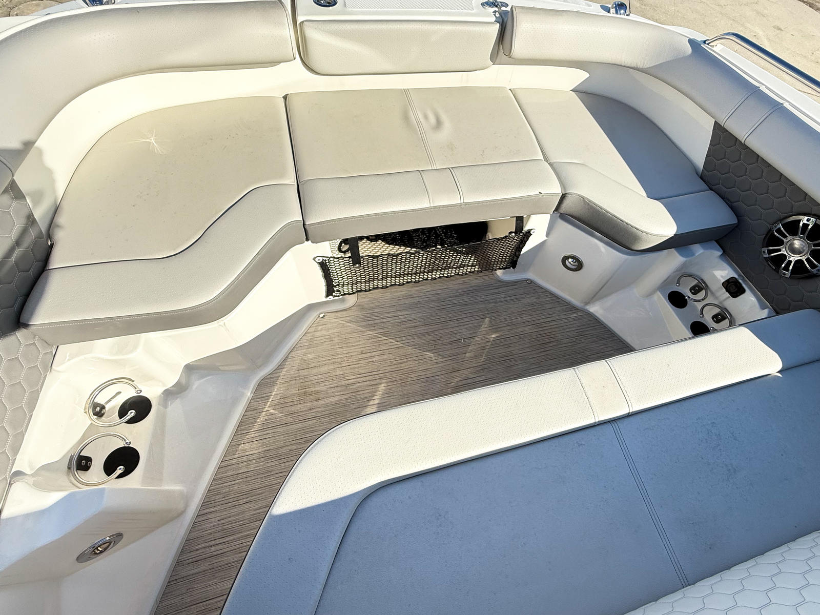 Powering this Sea Ray SDX 250 is a single engine boasting 250 horsepower. With just 34 hours on the engine, you can expect reliable performance and plenty of life left for future adventures. The SDX 250’s engine is engineered for smooth acceleration, responsive handling, and efficient cruising, making it ideal for a wide range of activities—from leisurely cruises to thrilling water sports. Whether you’re navigating open waters or exploring hidden coves, this Bowrider boat for sale delivers the power and agility you need for a memorable day on the water.