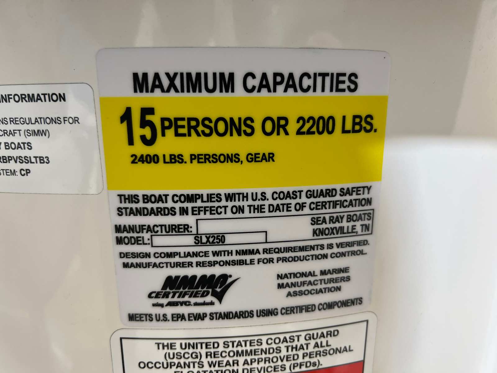 The 2020 Sea Ray SLX 250 is as practical as it is enjoyable. Its manageable 25-foot length makes docking and maneuvering a breeze, even for those new to boating. The efficient 300-horsepower engine strikes a balance between power and fuel economy, allowing you to spend more time on the water and less time at the pump. The used condition of this bowrider boat for sale offers exceptional value, giving you access to Sea Ray’s renowned quality and performance at a fraction of the cost of a new model.Storage solutions are thoughtfully integrated throughout the SLX 250, ensuring you have plenty of space for life jackets, water toys, and personal items. The boat’s design makes it easy to load and unload, so you can focus on enjoying your time on the water rather than worrying about logistics.