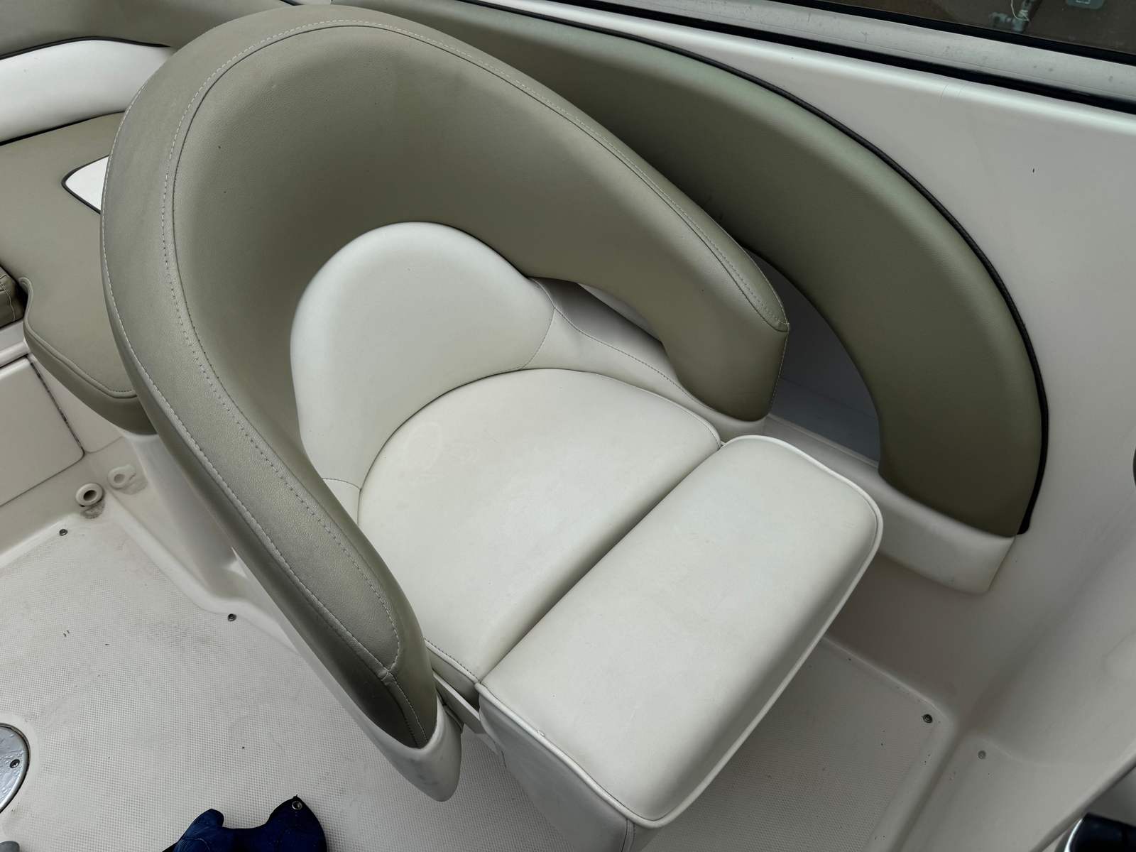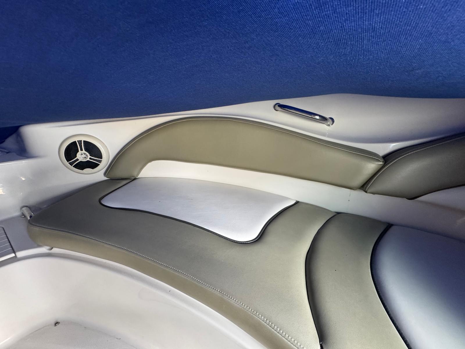 The 220 Sundeck makes room for 10 riders to stretch out in the lounge seating. The bow seating has its own boarding ladder and shower, and room for the table to set up when needed. The cockpit has L-shaped seating as well as a bolstered Captain's chair. Access to the head is in the privacy compartment in front of the passenger seat.