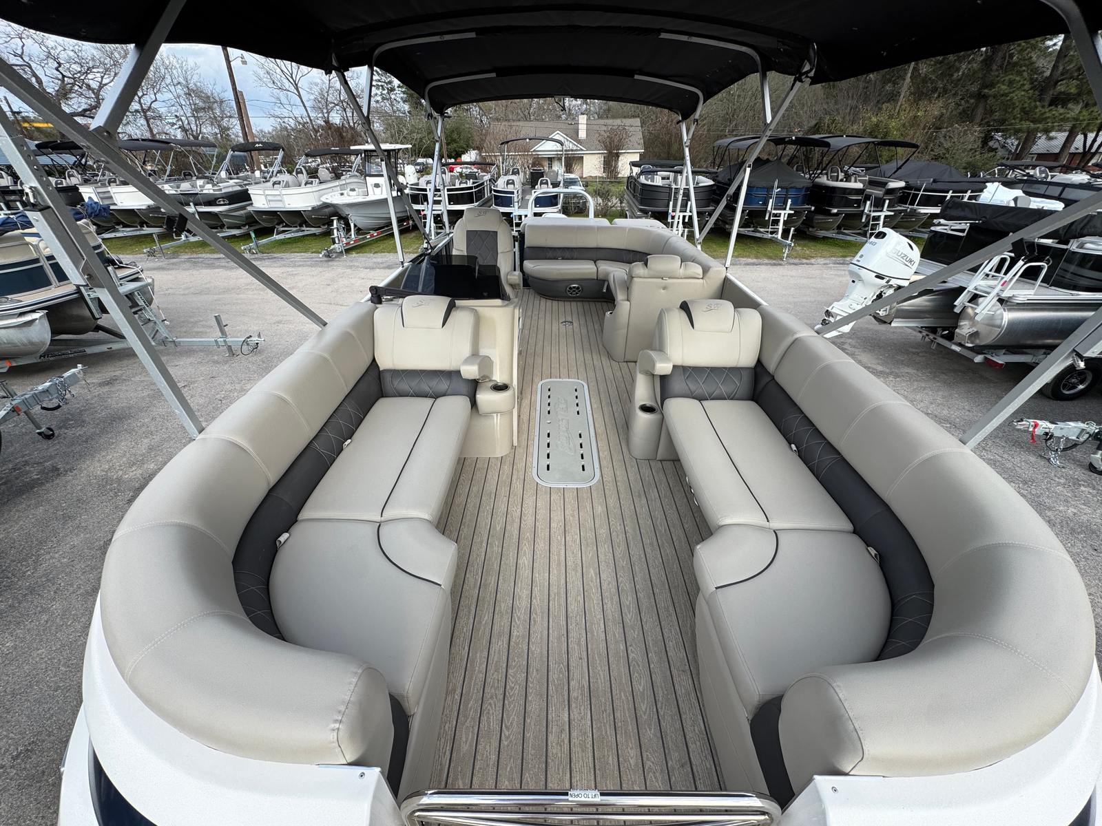Owning the Silverwave 2410 SW5 means embracing a lifestyle of fun, relaxation, and adventure. The spacious deck layout encourages socializing, making it perfect for hosting gatherings, family outings, or sunset cruises with friends. The plush seating and open floor plan create a welcoming environment where everyone can unwind and enjoy the scenery. The advanced sound system and Bluetooth connectivity set the stage for lively parties or peaceful moments with your favorite playlists.The double Bimini system ensures you can tailor the amount of shade to your needs, keeping everyone comfortable throughout the day. The ski tow bar adds an extra layer of excitement, allowing you to introduce water skiing or tubing into your boating repertoire. With the Garmin electronics package, you can confidently explore new waters, find the best fishing spots, and navigate with ease.