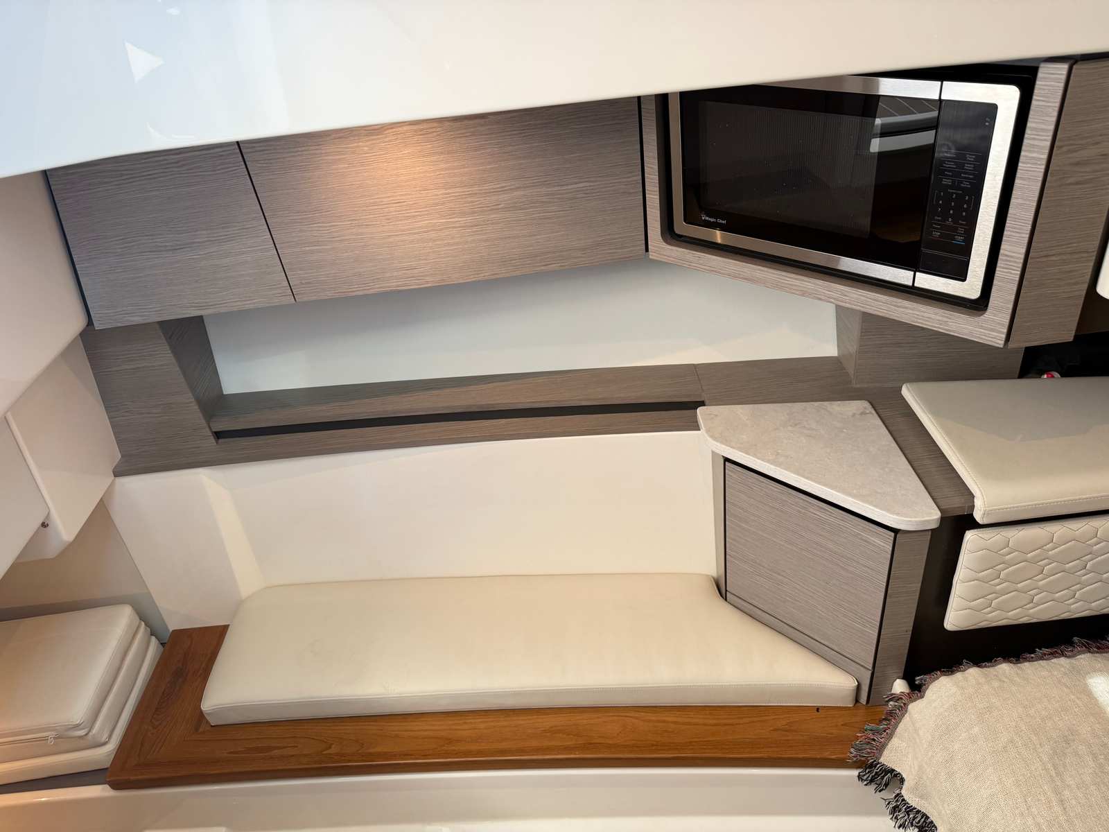 indoor/outdoor entertaining spaces—making it equally well suited for cruising, day boating, and hosting guests.