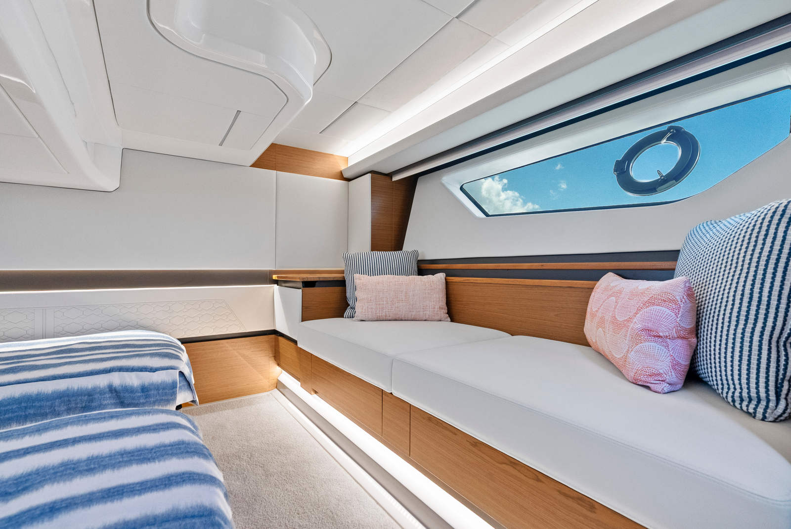 The 2025 Tiara Yachts 48 LE is designed with both luxury and practicality in mind. Its spacious deck and thoughtfully arranged seating areas provide the perfect setting for relaxation and socializing. The yacht’s modern design is complemented by high-quality materials and finishes, creating an inviting atmosphere for you and your guests. The expansive layout ensures that everyone on board has plenty of room to move and unwind, whether you are sunbathing on the deck or enjoying a meal in the main cabin.This yacht also features advanced navigation and control systems, enhancing your experience at the helm. The intuitive controls and state-of-the-art displays make piloting the 48 LE both enjoyable and straightforward. Every detail, from the ergonomic helm station to the ample storage compartments, is crafted to enhance your time on the water.