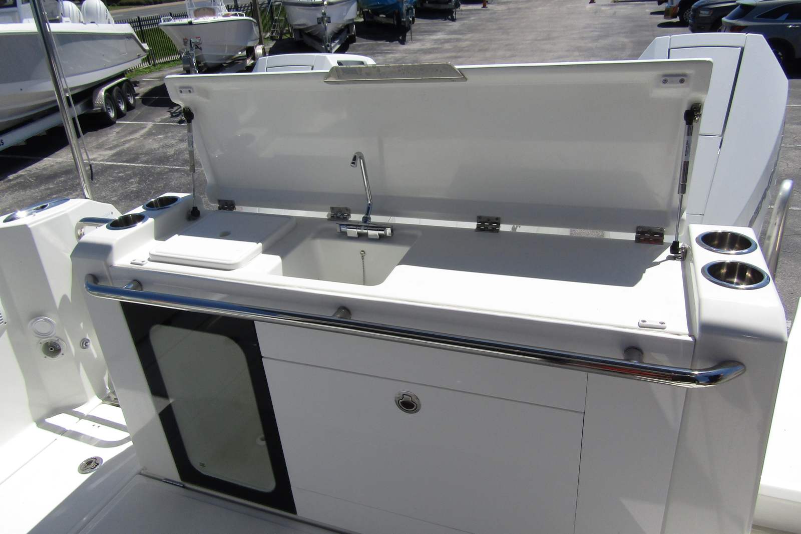 At the heart of the Wellcraft 355 lies a trio of powerful engines, delivering a combined 1,050 horsepower. This triple-engine configuration ensures exhilarating acceleration, impressive top speeds, and smooth handling in a variety of water conditions. With only 116 engine hours, these engines are primed for many more seasons of reliable performance. The Wellcraft 355 is engineered for those who demand both power and precision, making it a top contender among Center Console boats for sale. Whether you are cruising along the coastline or heading offshore for a day of fishing, the Wellcraft 355’s performance will exceed your expectations.