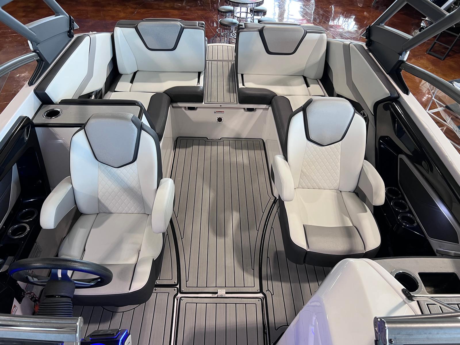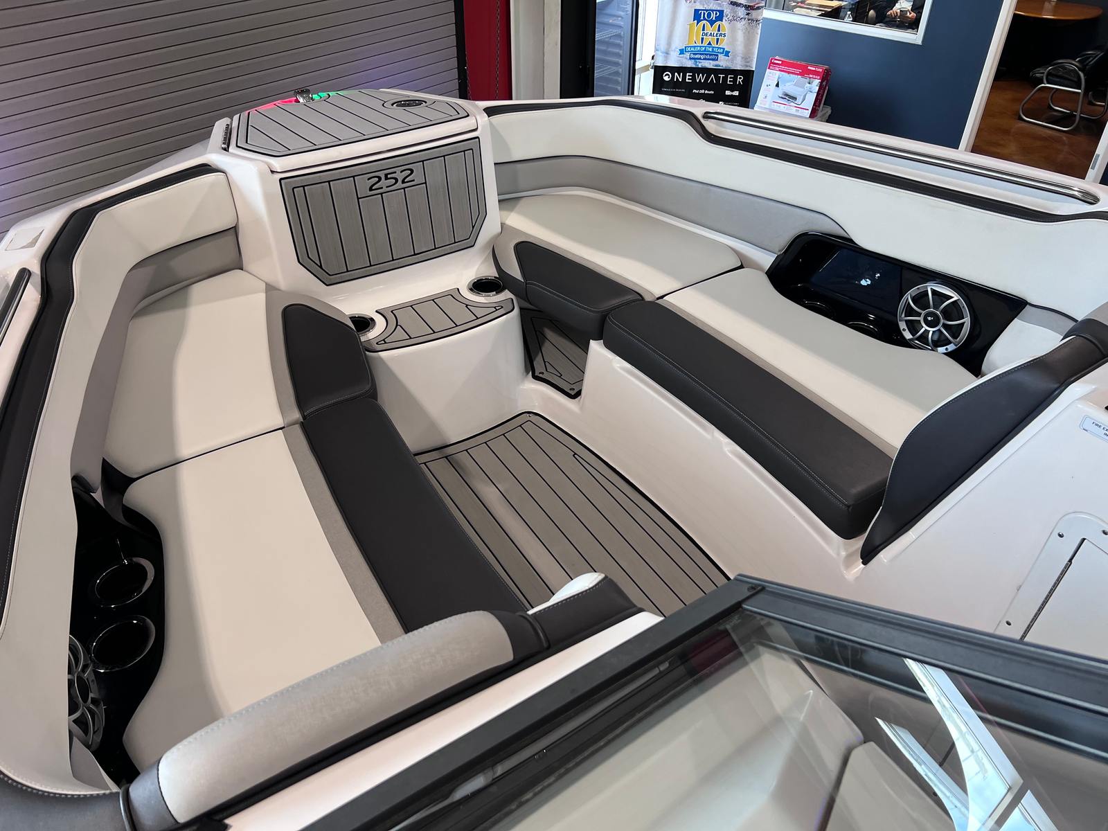 The Yamaha 252 SE is packed with features designed to enhance your time on the water. Its 24.5-foot length provides ample space for family and friends, while the thoughtfully designed layout ensures comfort and convenience throughout the boat. The spacious cockpit is perfect for socializing, with comfortable seating and easy access to all areas of the boat. The helm is equipped with intuitive controls and clear instrumentation, making it easy to monitor performance and navigate with confidence.Special features of the 252 SE include advanced jet propulsion technology, which not only delivers impressive speed and agility but also enhances safety by eliminating exposed propellers. This makes the Yamaha 252 SE an ideal choice for families with children or anyone who values peace of mind on the water. The boat’s modern styling, premium materials, and attention to detail are evident in every aspect of its design, from the sleek exterior to the comfortable interior spaces.