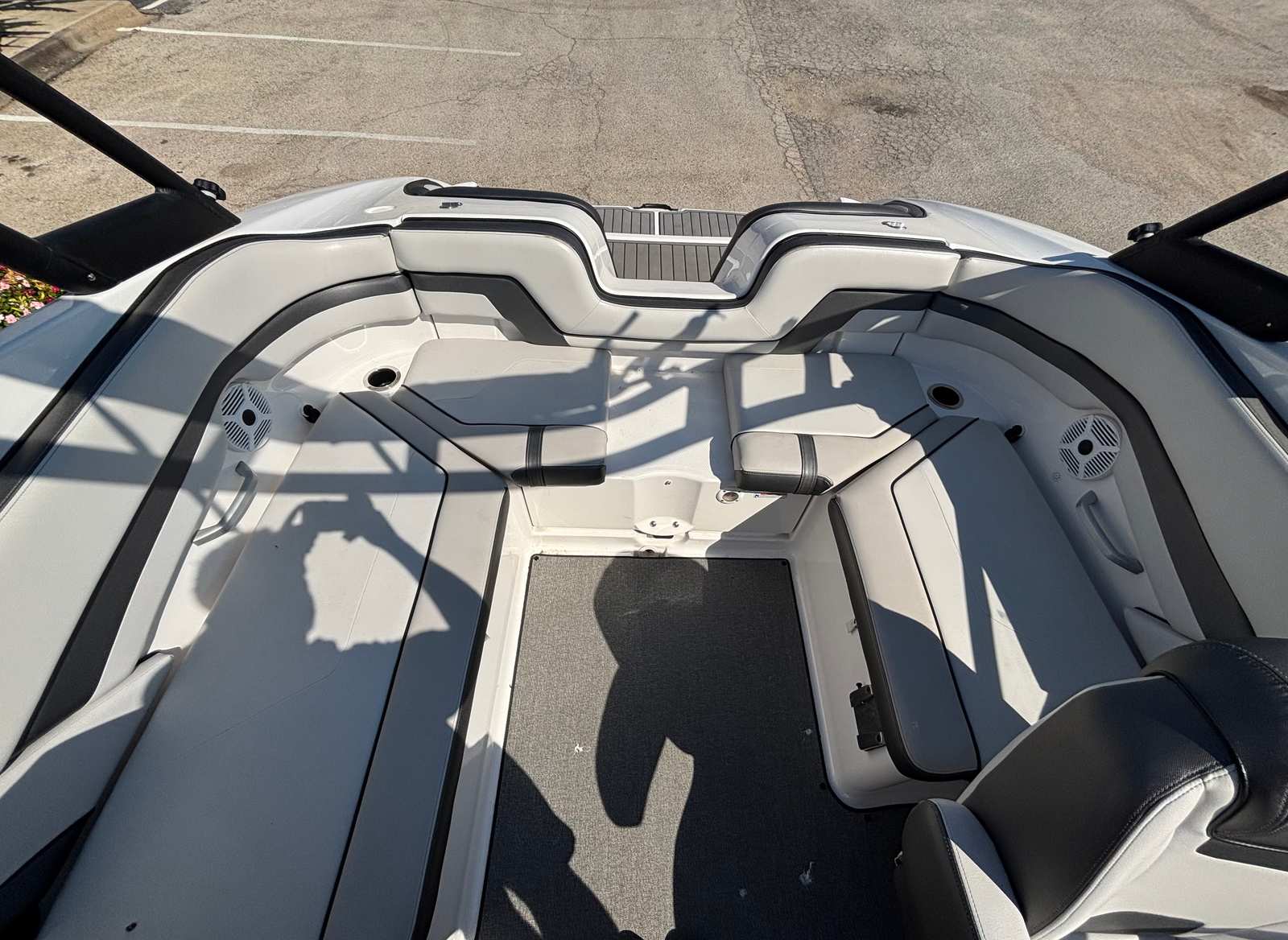 Under the hood, the Yamaha AR240 is powered by twin engines, delivering a combined 360 horsepower. With only 120 engine hours, these engines promise reliability and plenty of life left for future adventures. The jet propulsion system provides instant acceleration, precise handling, and a shallow draft, making it easy to navigate both open waters and tight spots near the shore. Whether you’re cruising at high speeds or enjoying a leisurely ride, the AR240’s performance is both exhilarating and smooth, ensuring a responsive and enjoyable experience for all aboard.